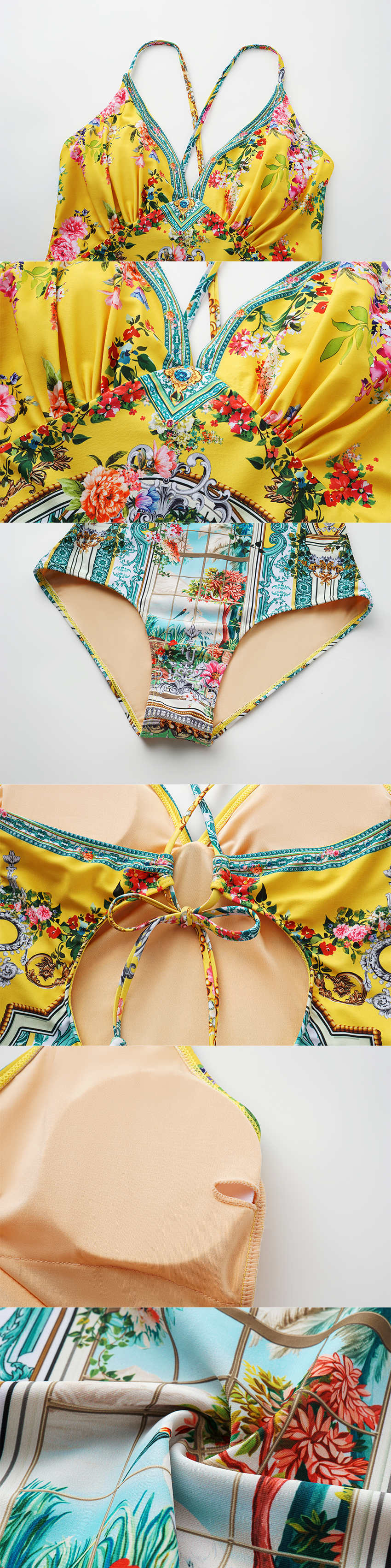 V-neck Straps Bougainville Print Swimsuit Set(s)