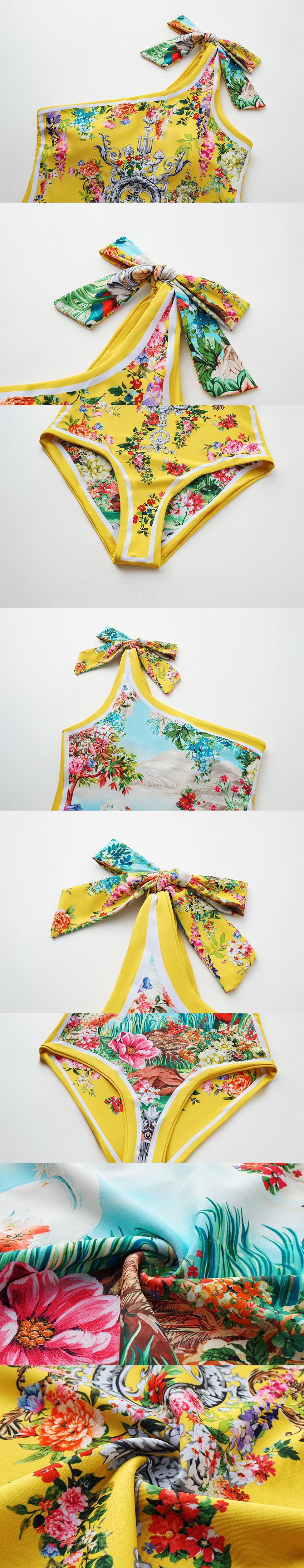 Reversible One Shoulder Bougainvillea Print Swimsuit Set(s)