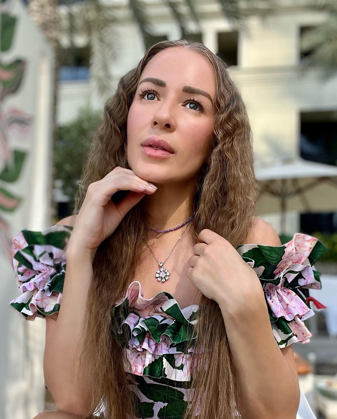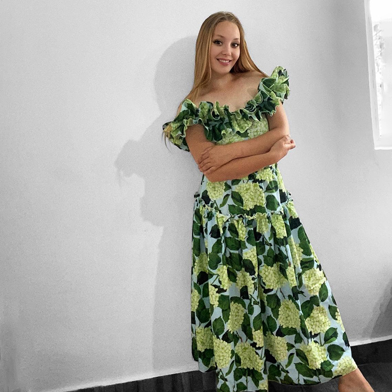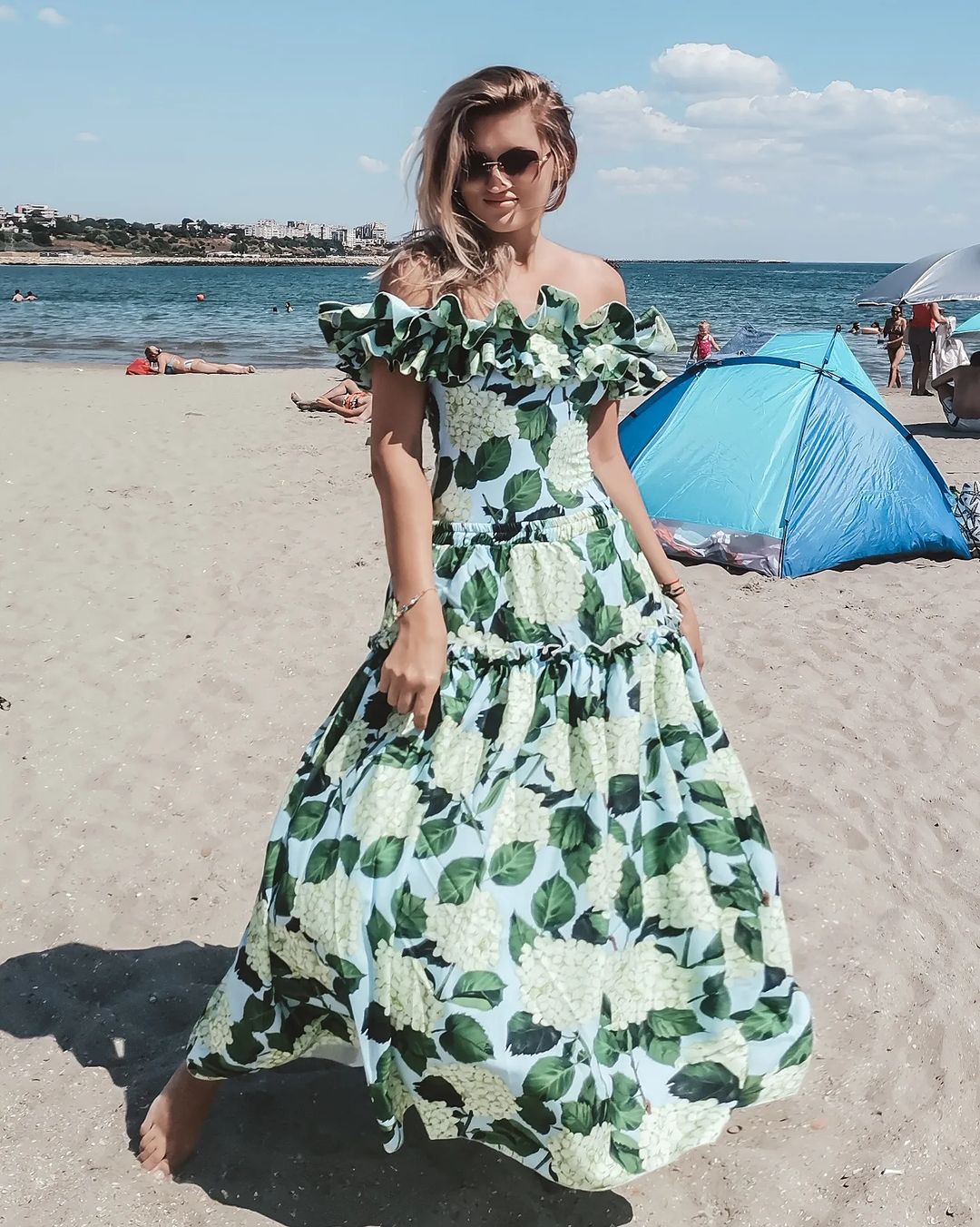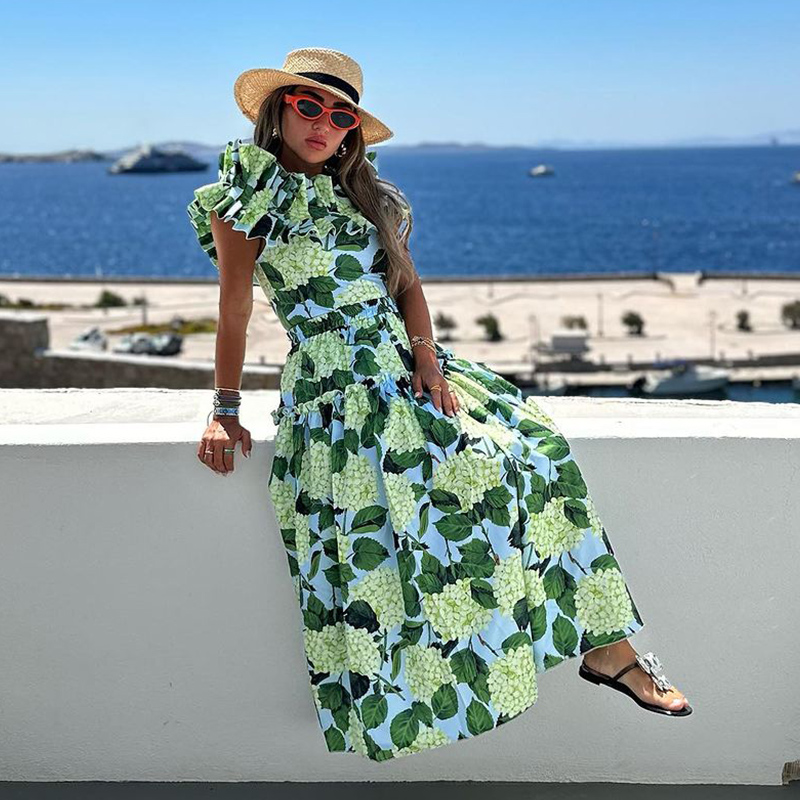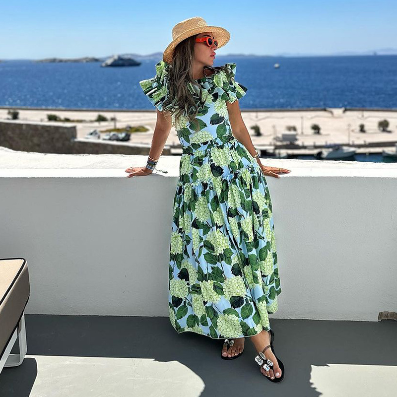 Off Shoulder Hydrangea Print Ruffle One Piece Swimsuit and Skirt Flaxmaker