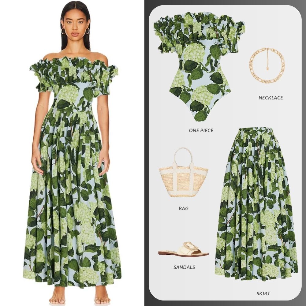 • One piece swimsuit and skirt