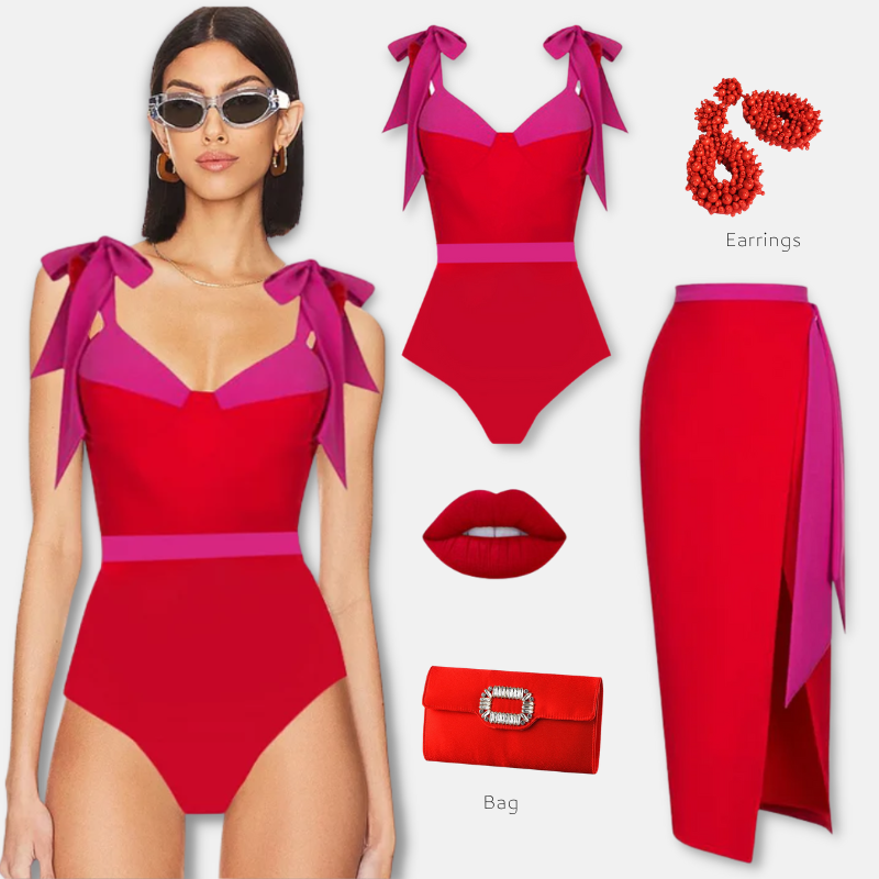 Lemon Print Tie-shoulder One Piece Swimsuit and Sarong or Skirt Flaxmaker