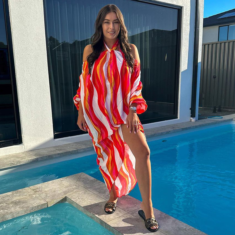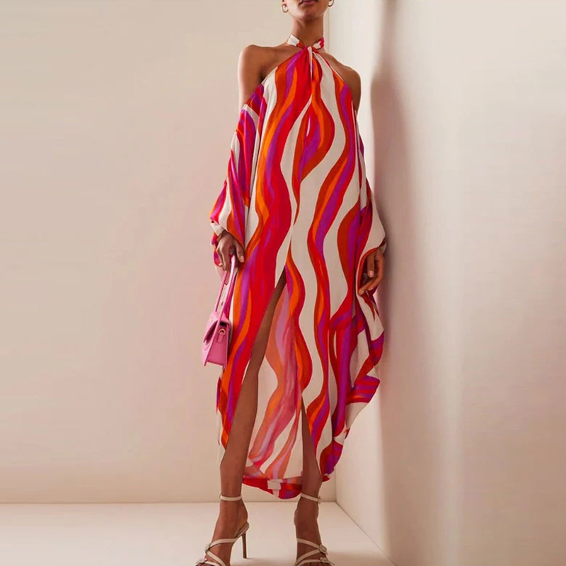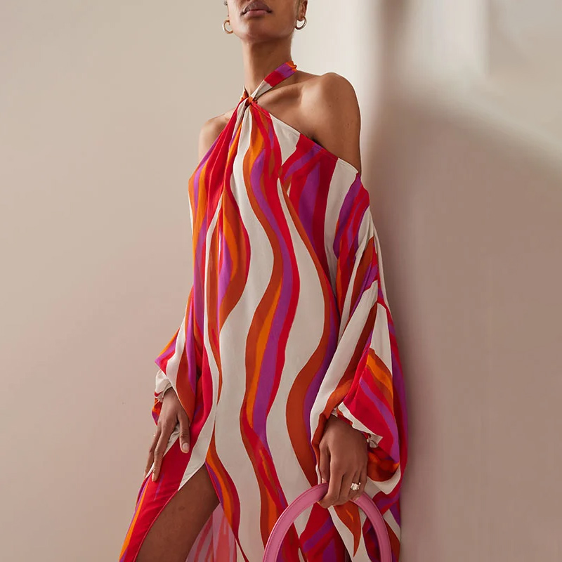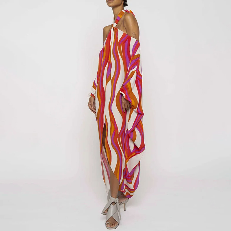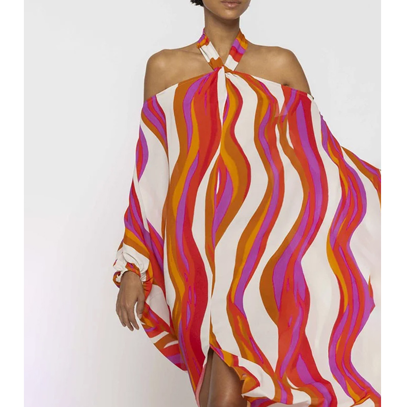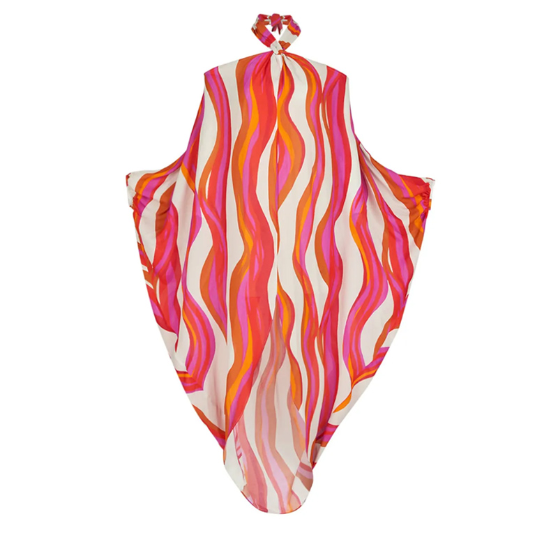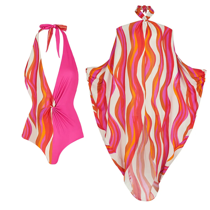 Halter Color Block One Piece Swimsuit and Cover Up Flaxmaker
