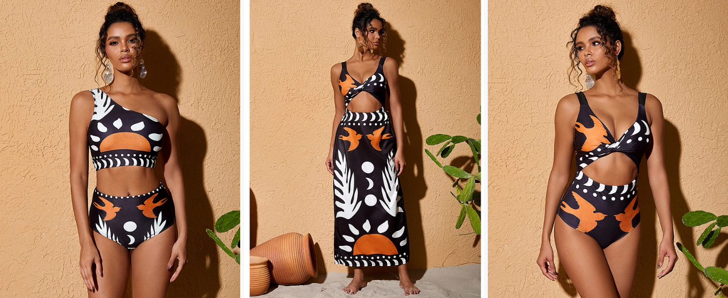 One Shoulder High Waist Bikini Swimsuit and Pants or Skirt Flaxmaker