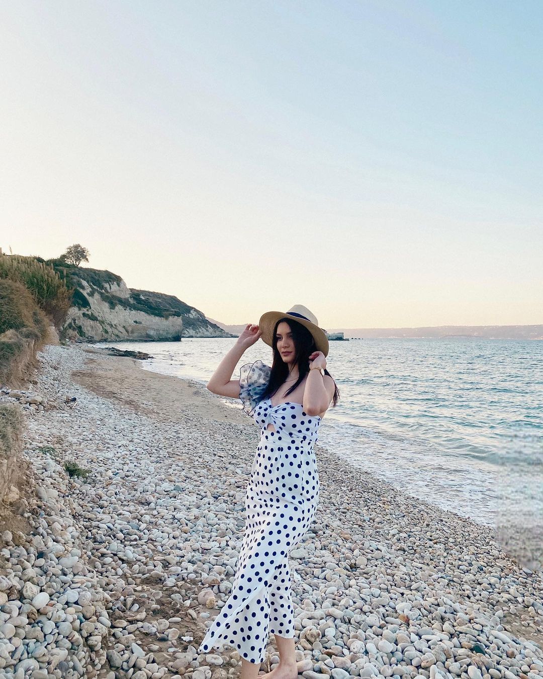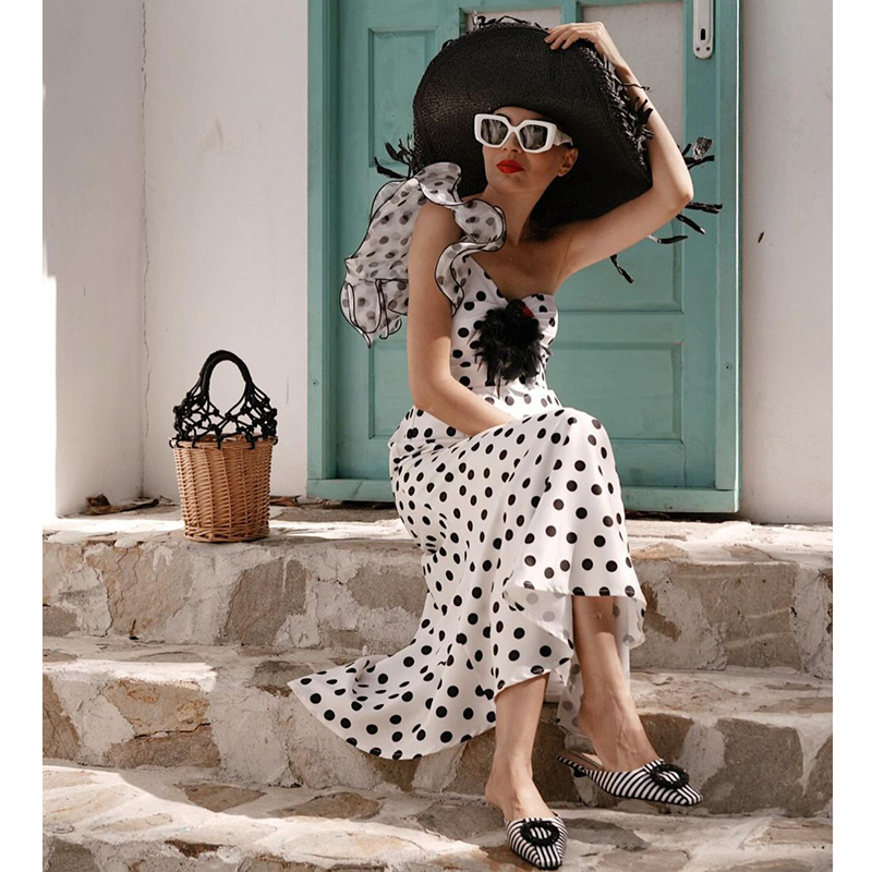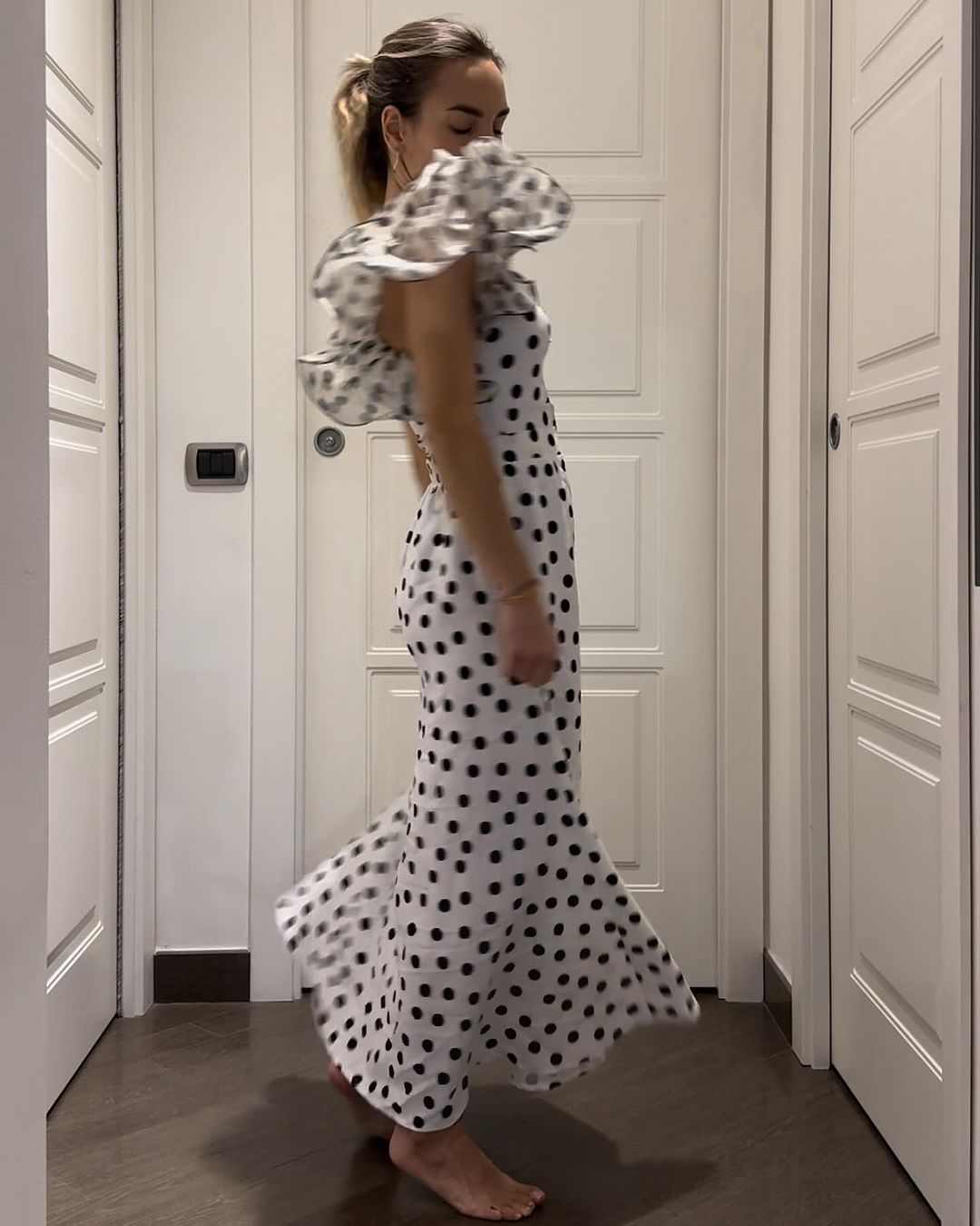 One Shoulder Ruffle Dot Printed Cut Out One Piece Swimsuit and Skirt Flaxmaker