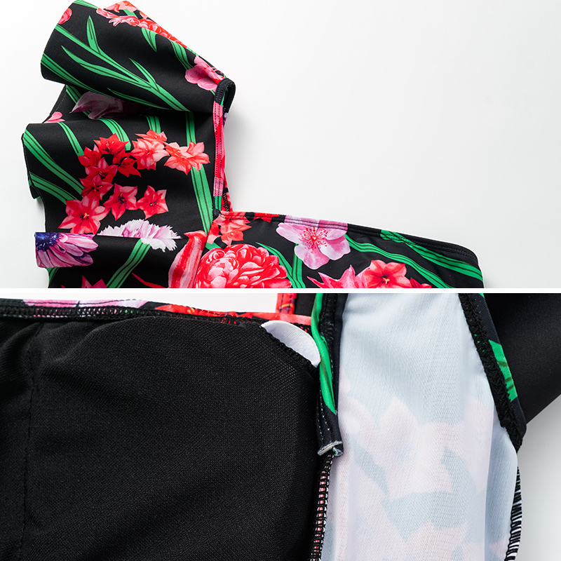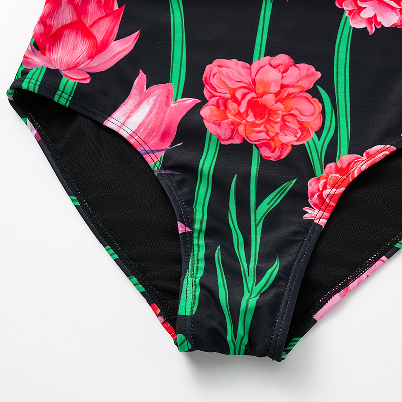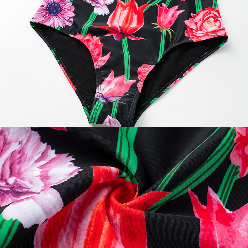 Black Laser Cutting Flower Hollow One Piece Swimsuit and Skirt