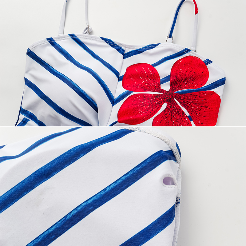 Off Shoulder Print One Piece Swimsuit and Skirt