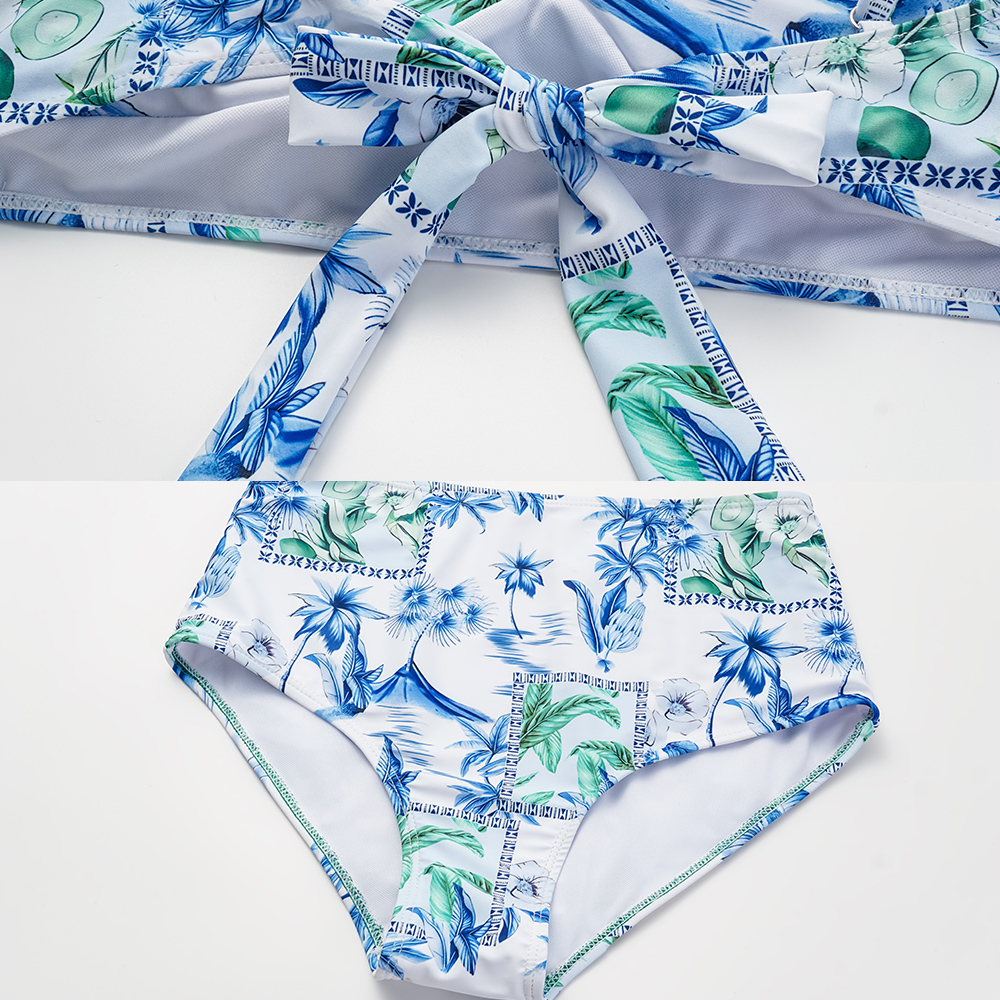 Sling Ruffle Printed High Waist Bikini Swimsuit and Skirt