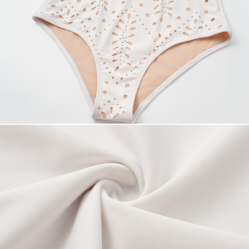 Laser White Hollow Out One Piece Swimsuit and Skirt