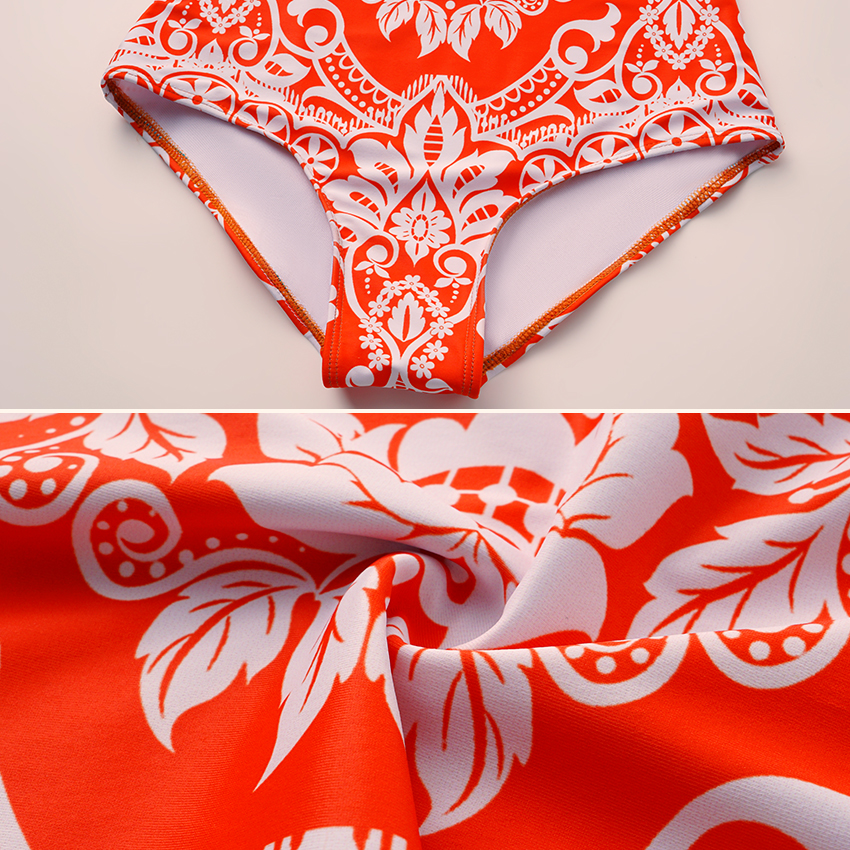 Adjustable Shoulder Straps Red Retro Print Swimsuit Set(s)
