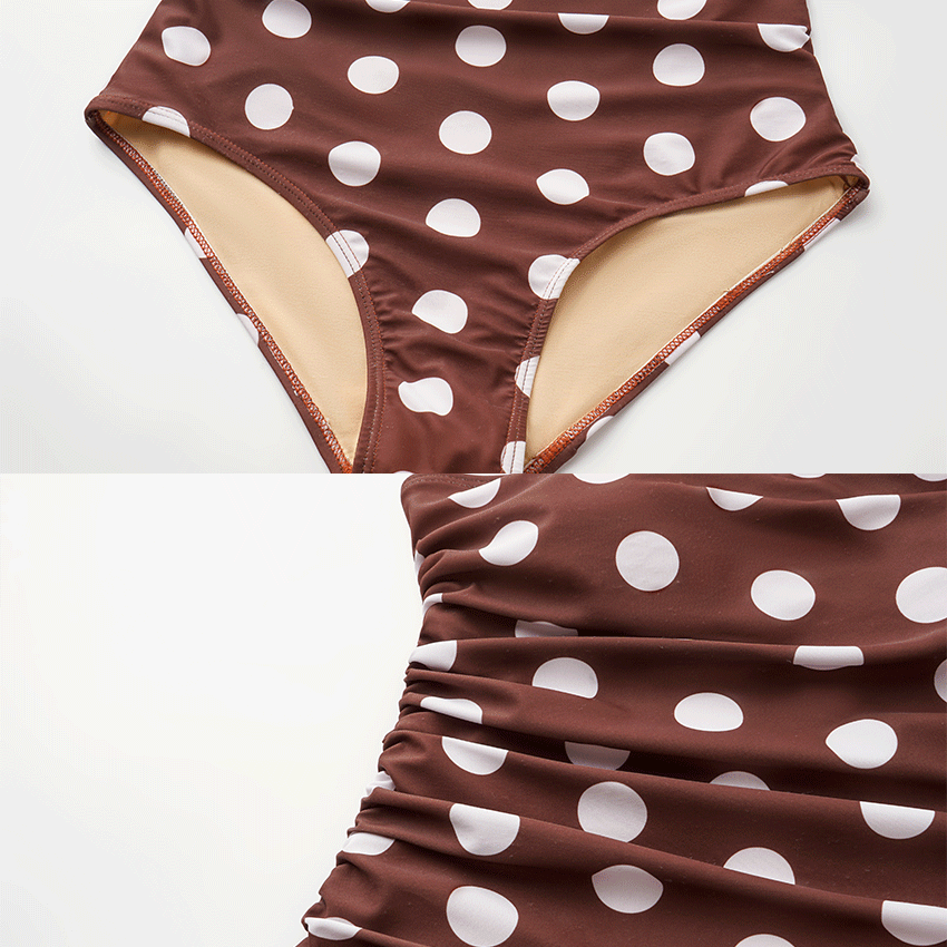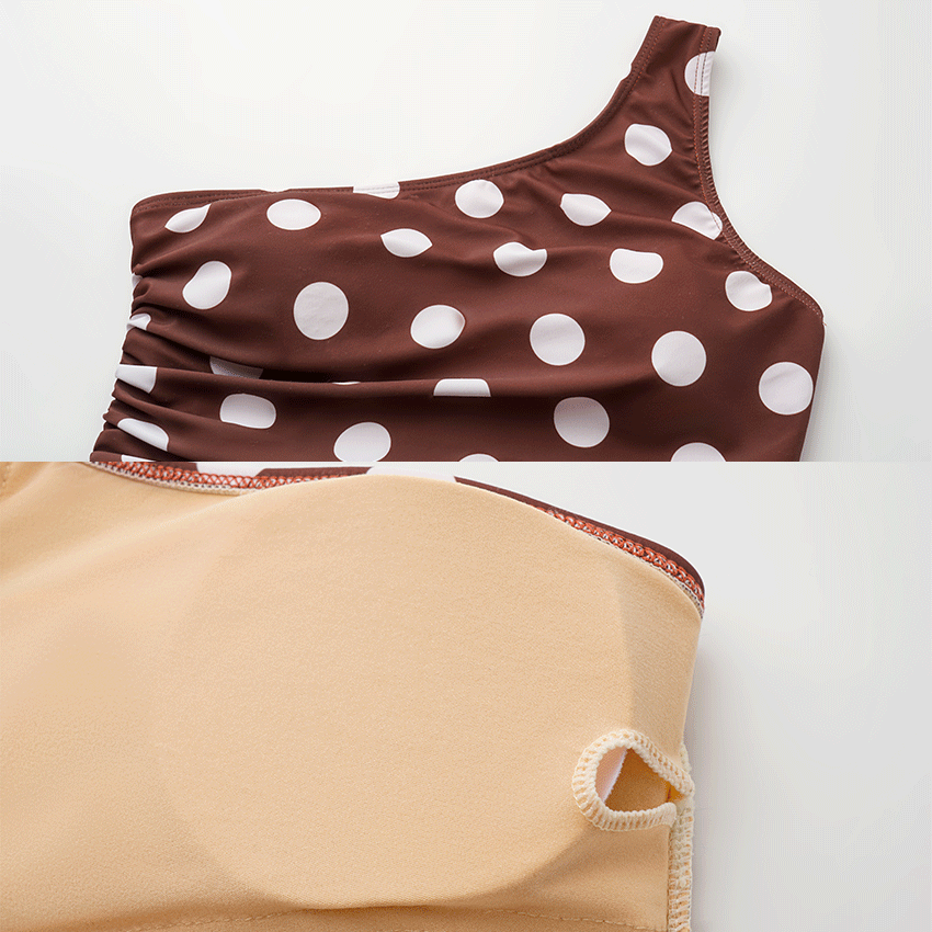 One Shoulder Dot Print Ruched Swimsuit Set(s)