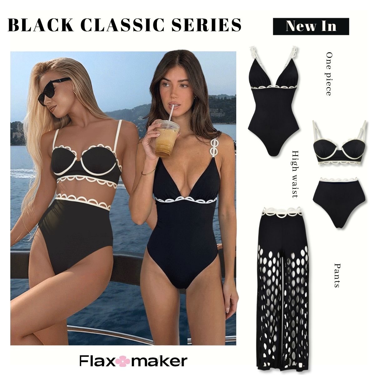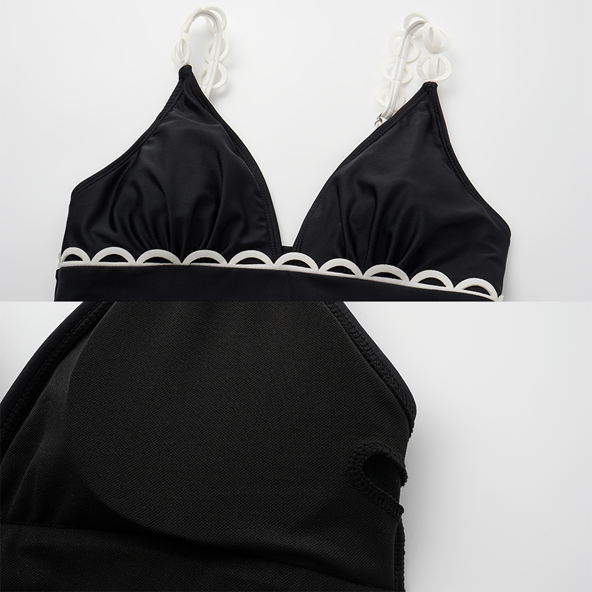 Adjustable Shoulder Straps Black Hollow Swimsuit Set(s)