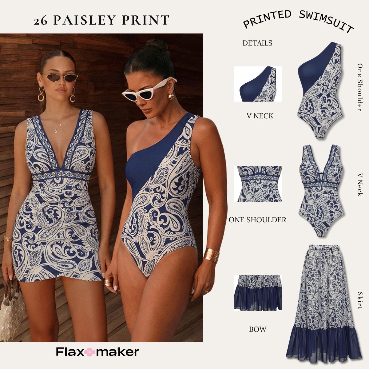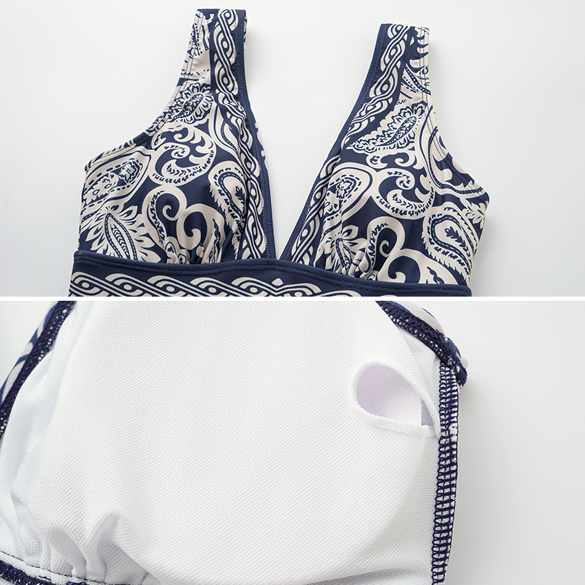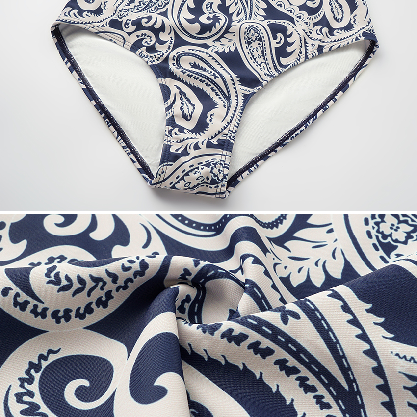 V Neck Blue Paisley Print Swimsuit Set(s)