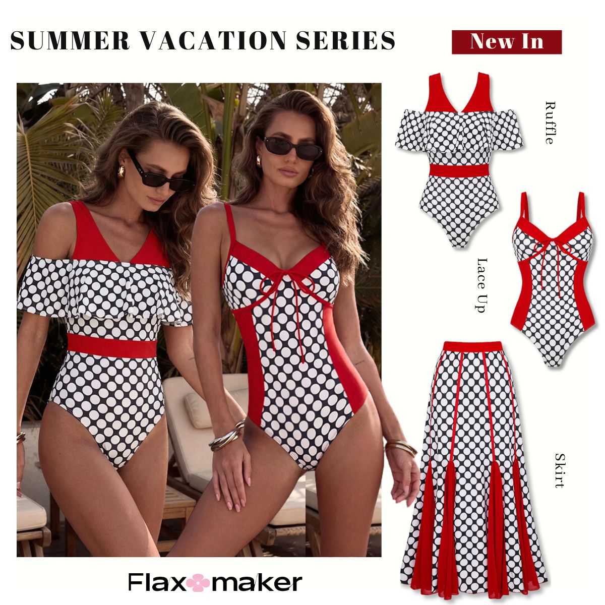 Adjustable Shoulder Straps Retro Polka Dots Print Swimsuit Set(s)