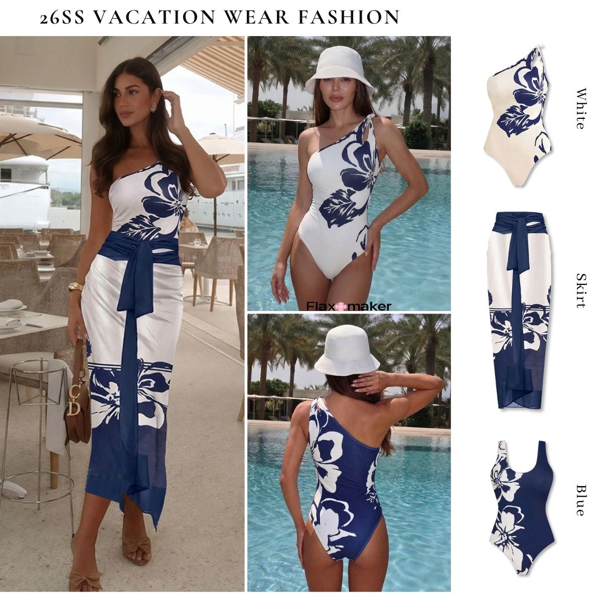 One Shoulder Cut Out Blue Flower Print Swimsuit Set(s)