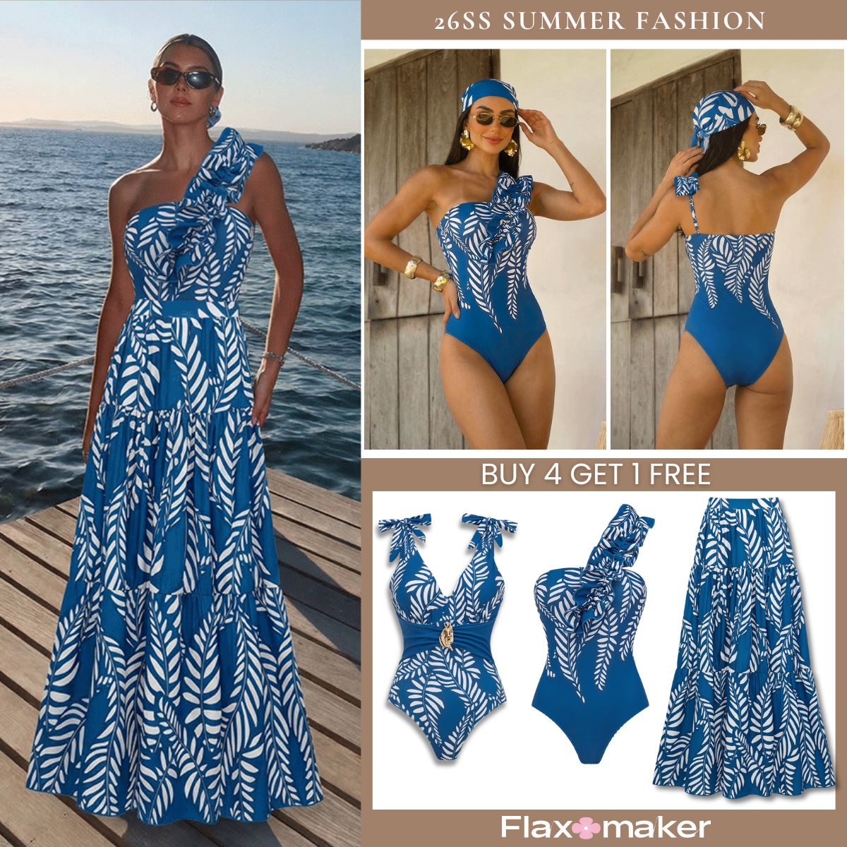 One Shoulder Ruffle Printed Swimsuit Set(s)