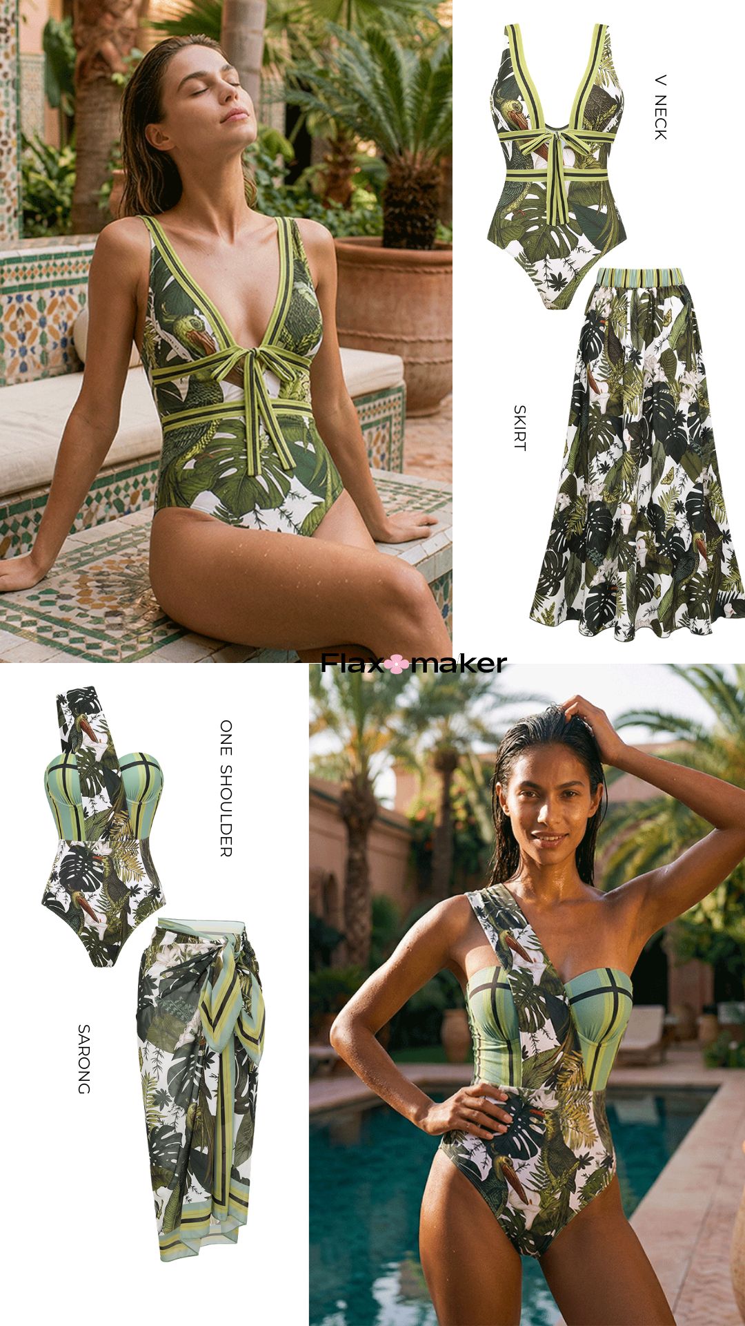 Lemon Print Tie-shoulder One Piece Swimsuit and Sarong or Skirt Flaxmaker