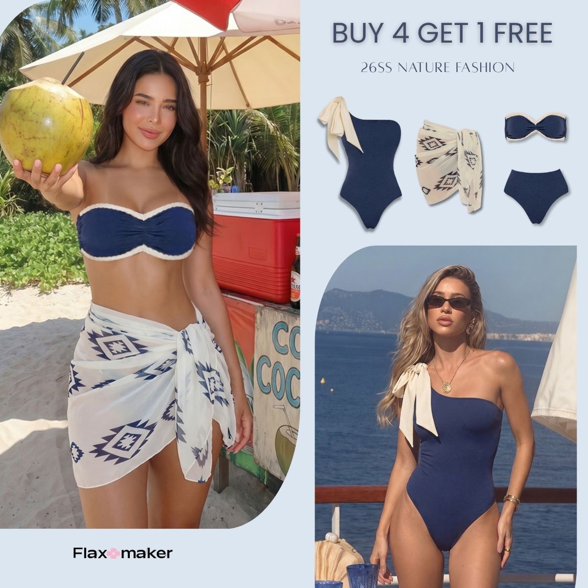Lemon Print Tie-shoulder One Piece Swimsuit and Sarong or Skirt Flaxmaker