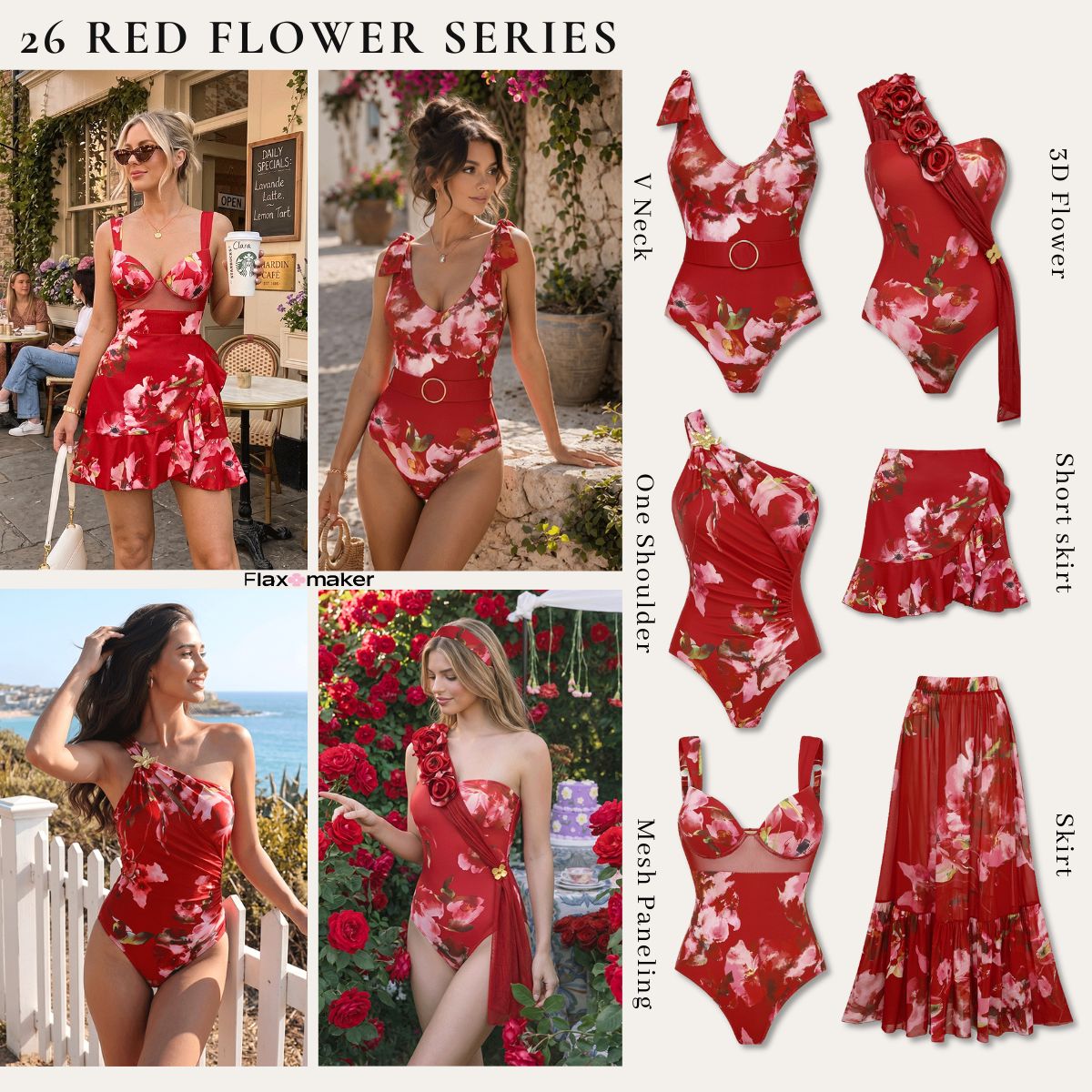 Sling Mesh Paneling Flower Print Red Swimsuit Set(s)