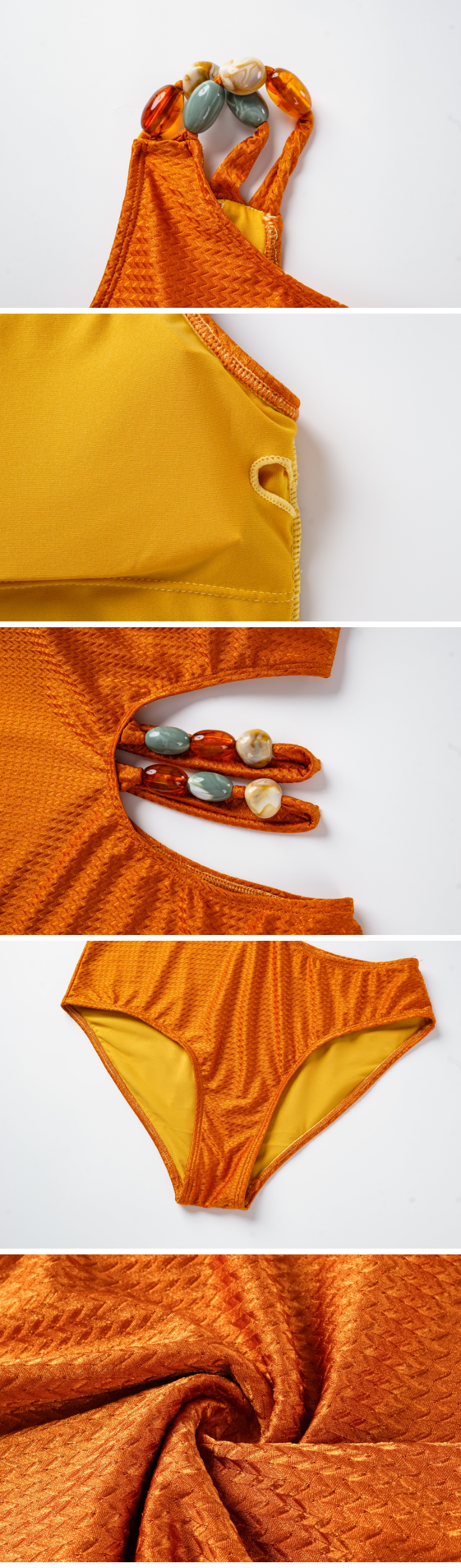 Beaded Cutout One Shoulder One Piece Swimsuit and Sarong Flaxmaker