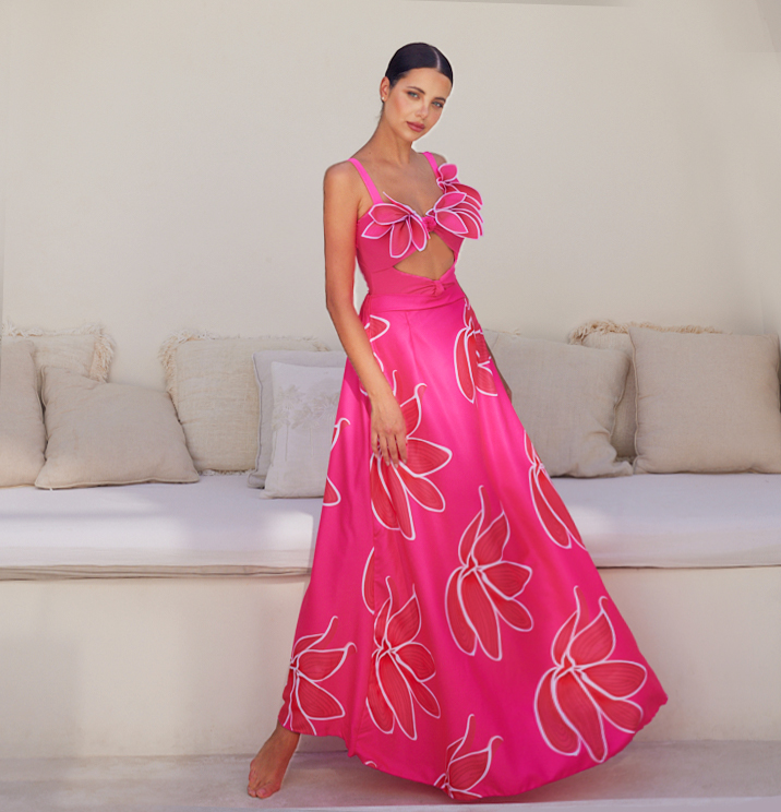 Bow-detailed Bougainvillea Print Swimsuit Set(s)