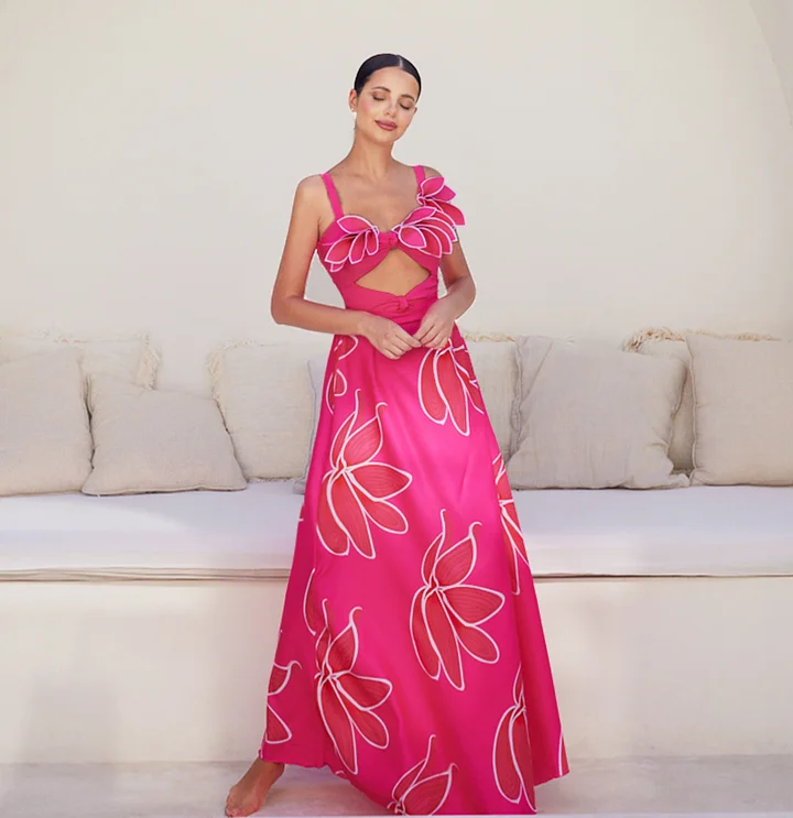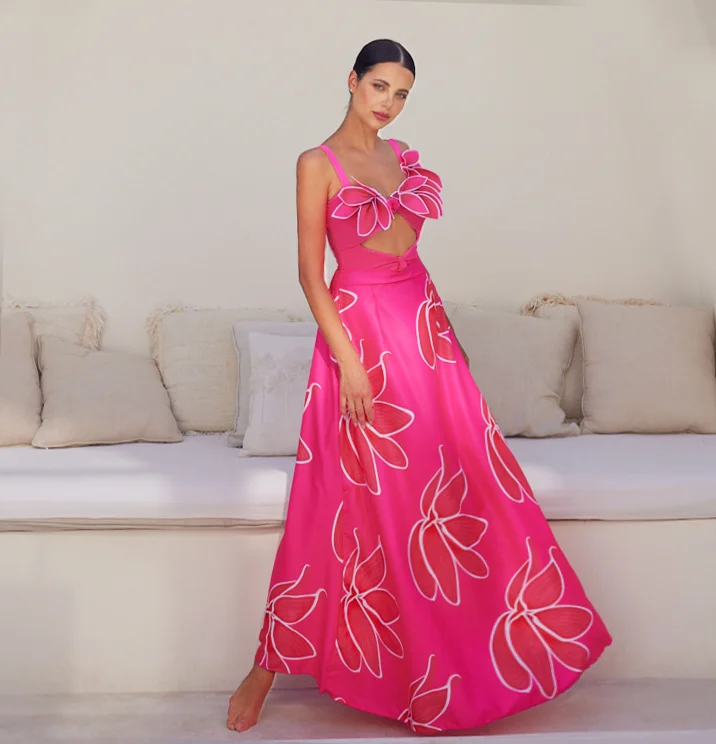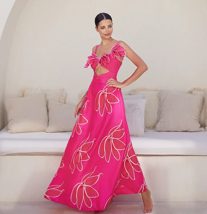 3D Flower Hot Pink Cutout One Piece Swimsuit and Skirt Flaxmaker