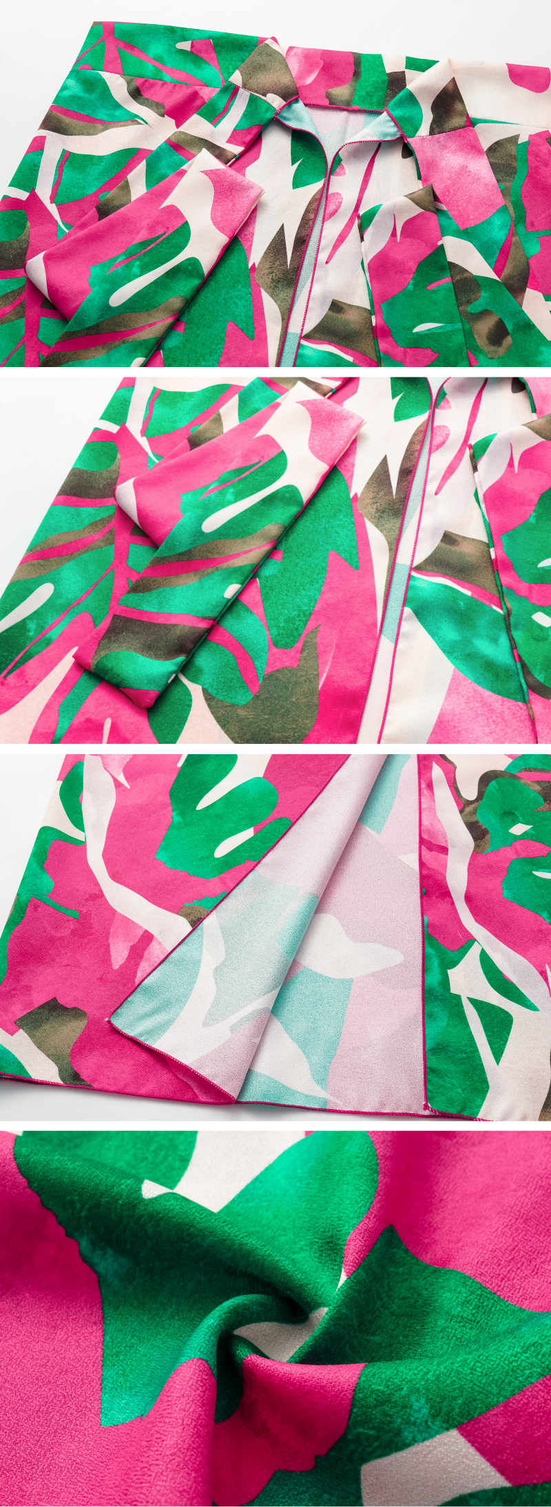 Abstract Rose Red Contrast Print Long sleeve One Piece Swimsuit and Skirt