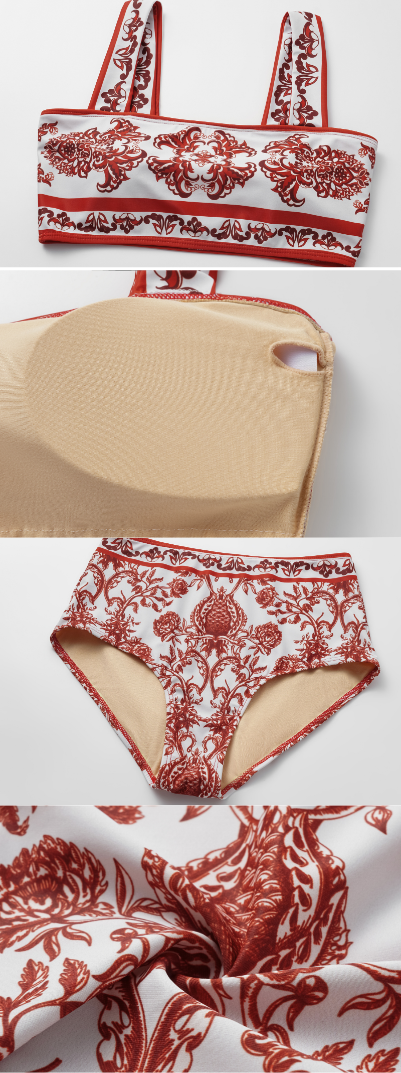 Red Flower Totem Pattern Print Bikini and Skirt