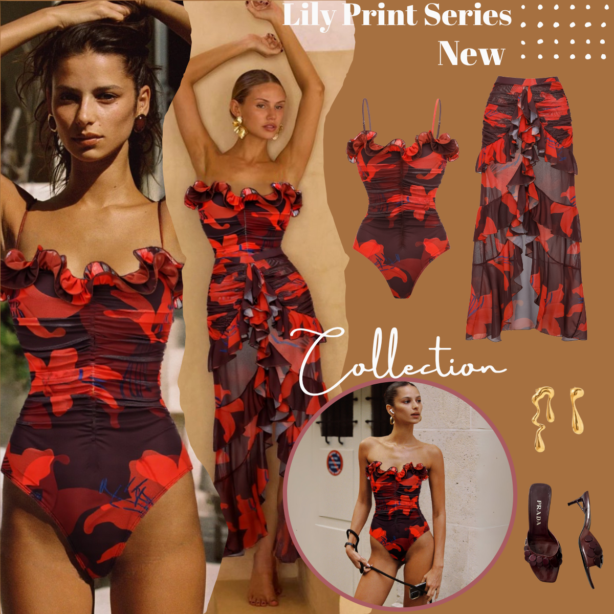 - One Piece Swimsuit and Skirt