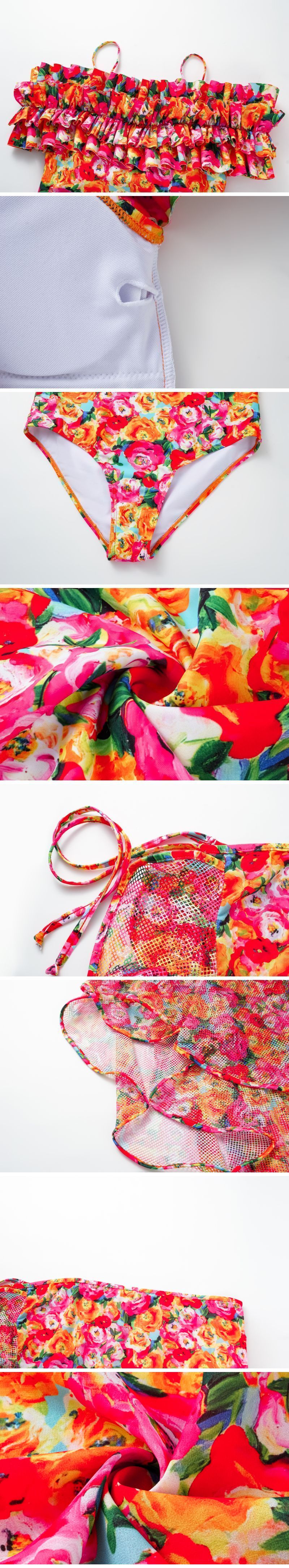 Detachable Double Shoulder Strap With Ruffles One Piece Swimsuit and Sarong Flaxmaker