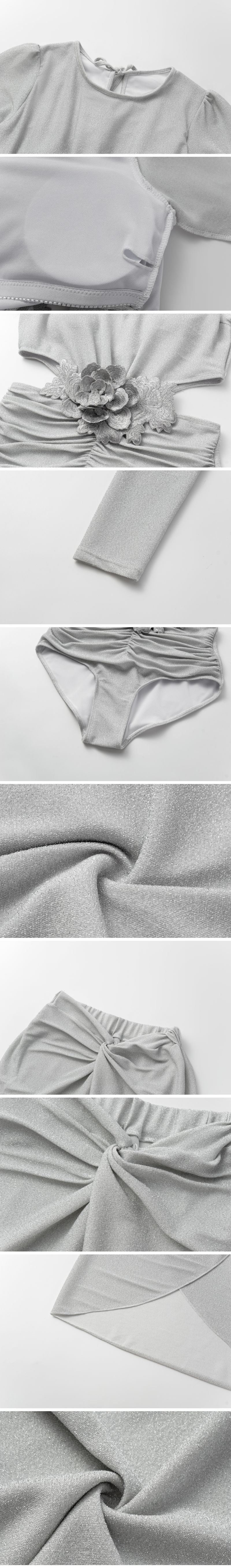Silver Embroidered Long Sleeves Cutout Swimsuit and Sarong