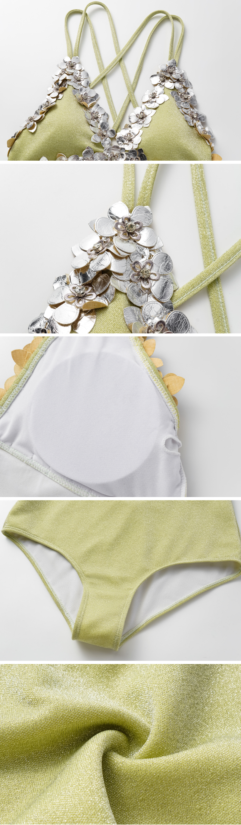 - 3D leather flowers swimsuit: Lay flat to dry to maintain floral shape; avoid wringing.