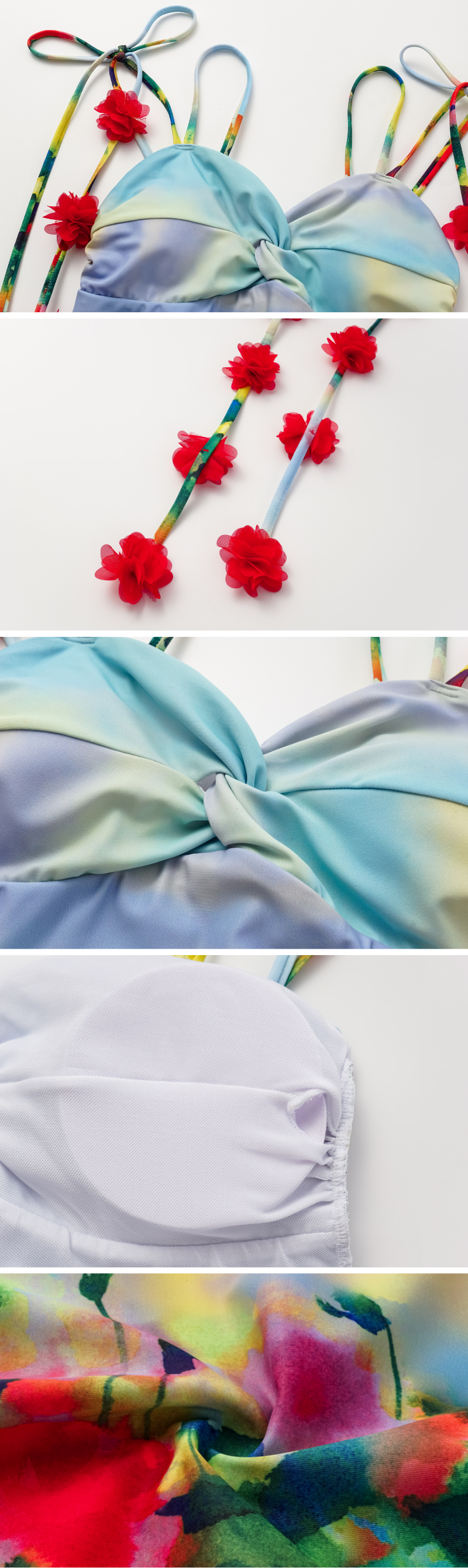 Tie-shoulder Phantom Garden One Piece Swimsuit and Sarong