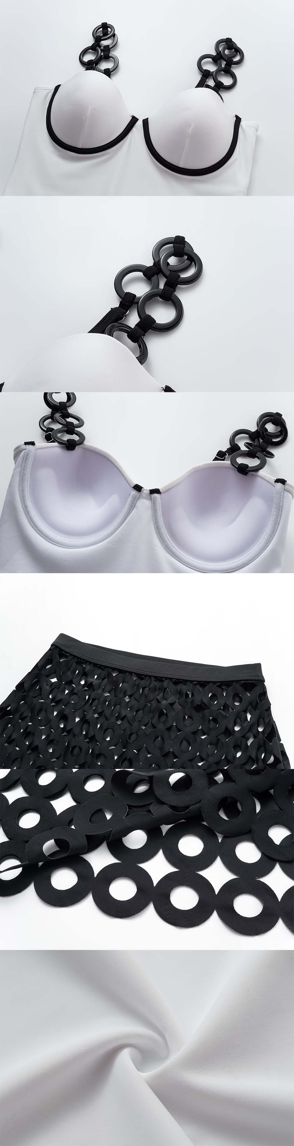 Ring Decoration White One Piece Swimsuit and Skirt