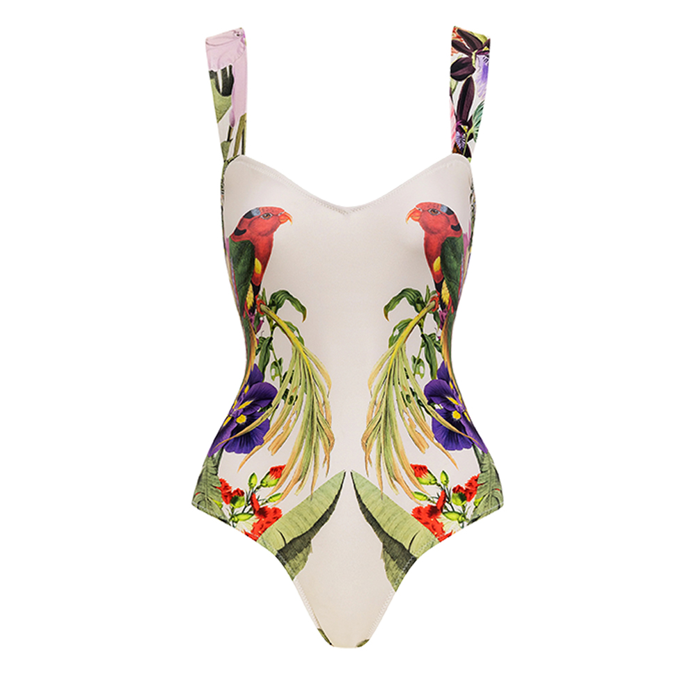 Sling Classic Majolica Series Pattern Print One Piece Swimsuit and Skirt or Shorts