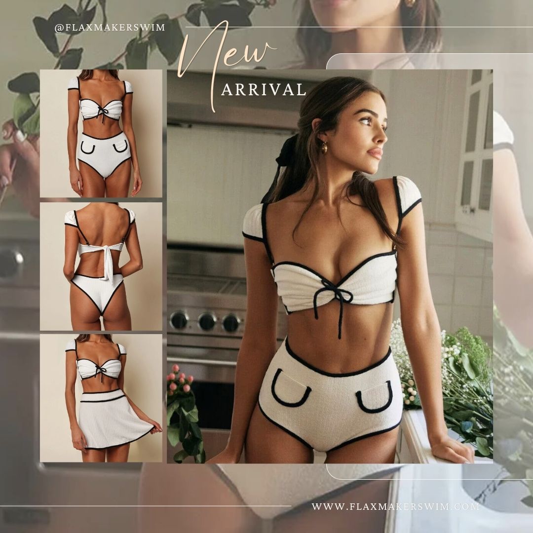 Ivory Black Trim High Waist Bikini Swimsuit and Skirt Flaxmaker