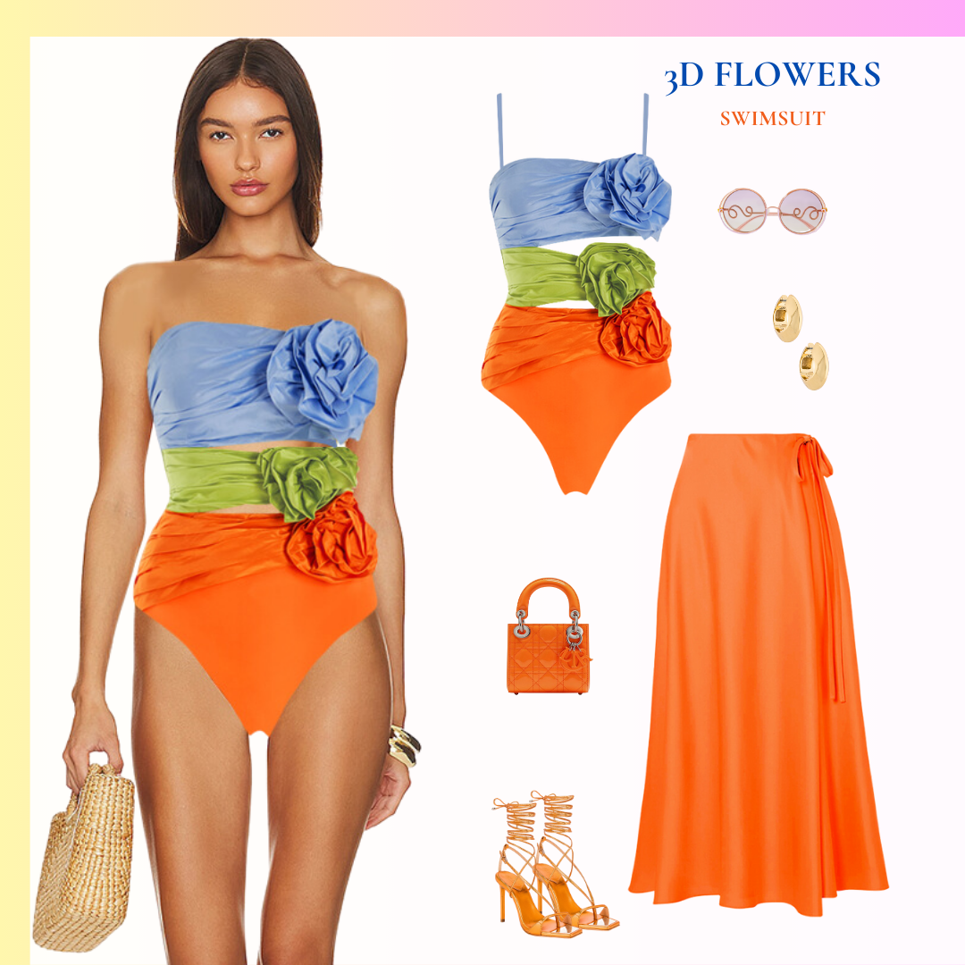 3D Flowers One Piece Swimsuit and Skirt Flaxmaker