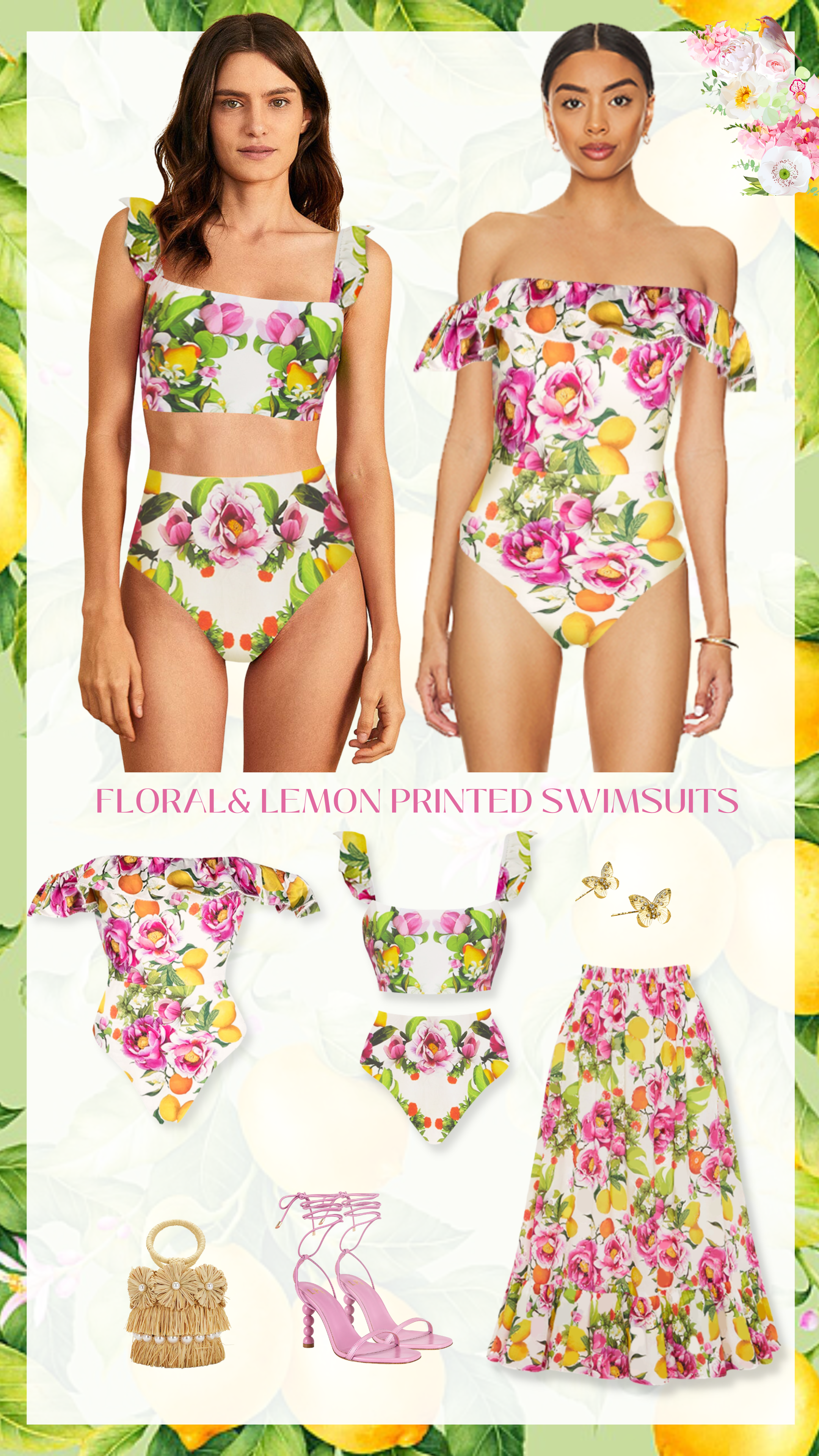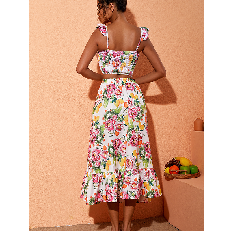 Ruffle Starp Printed Bikini Swimsuit and Skirt Flaxmaker