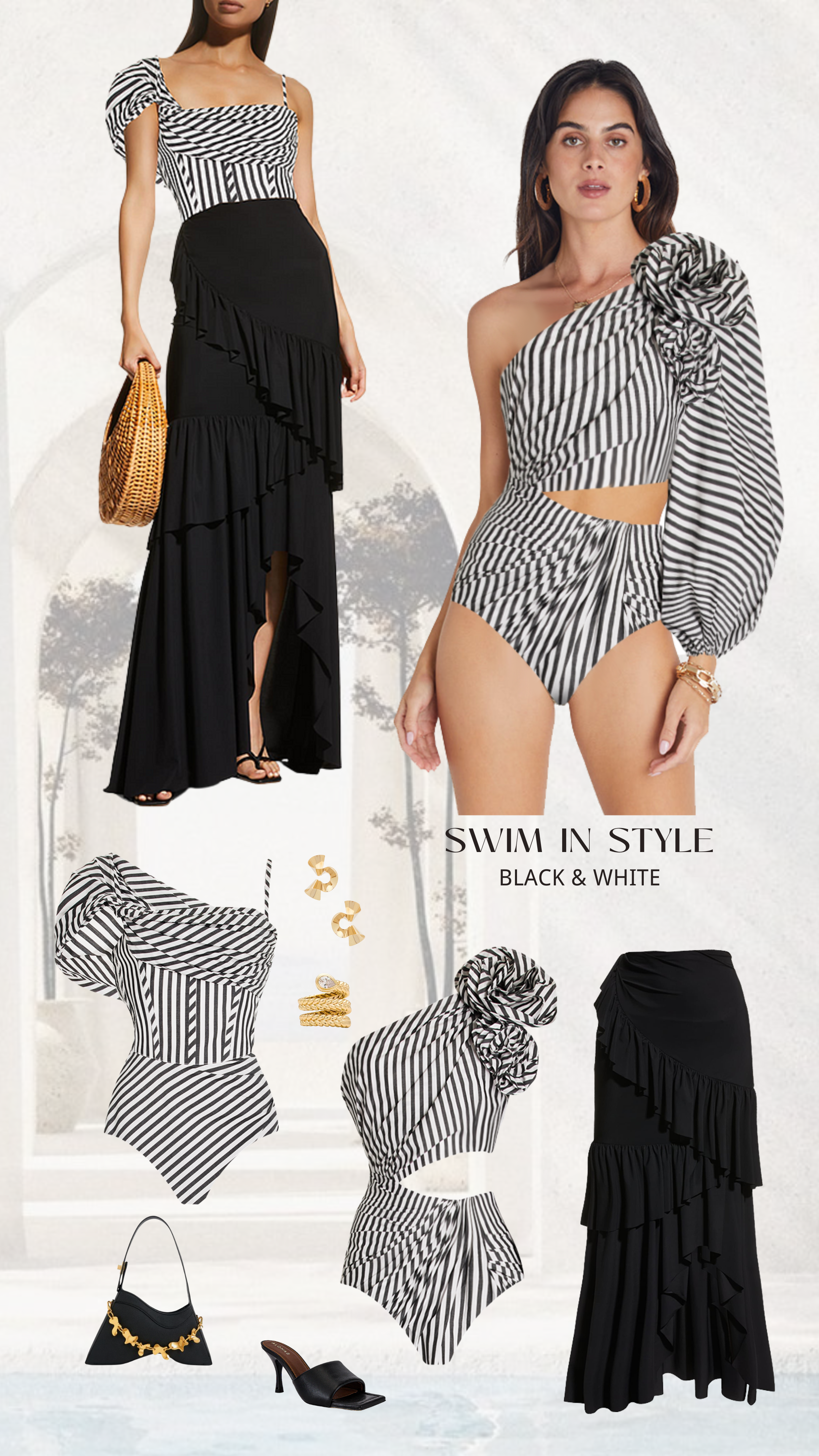 - One piece swimsuit and skirt