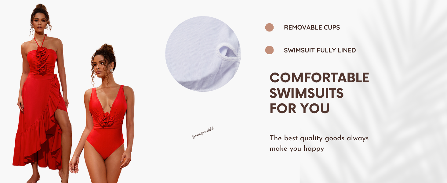 Detachable 3D Flower Red One Piece Swimsuit and Skirt Flaxmaker
