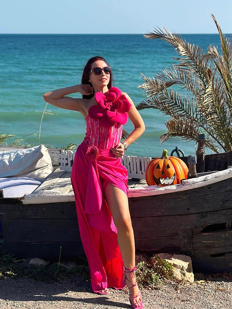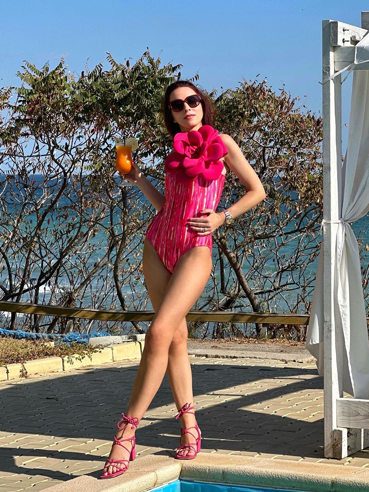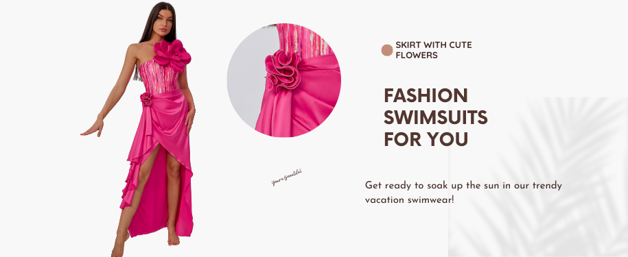 3D Flower Decor One Piece Swimsuit and Skirt Flaxmaker