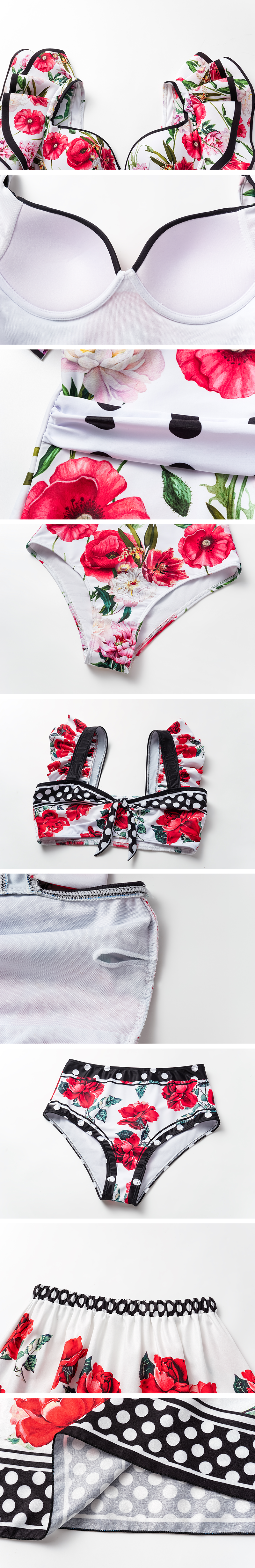 Rose Printed One Piece Swimsuit and Skirt Flaxmaker