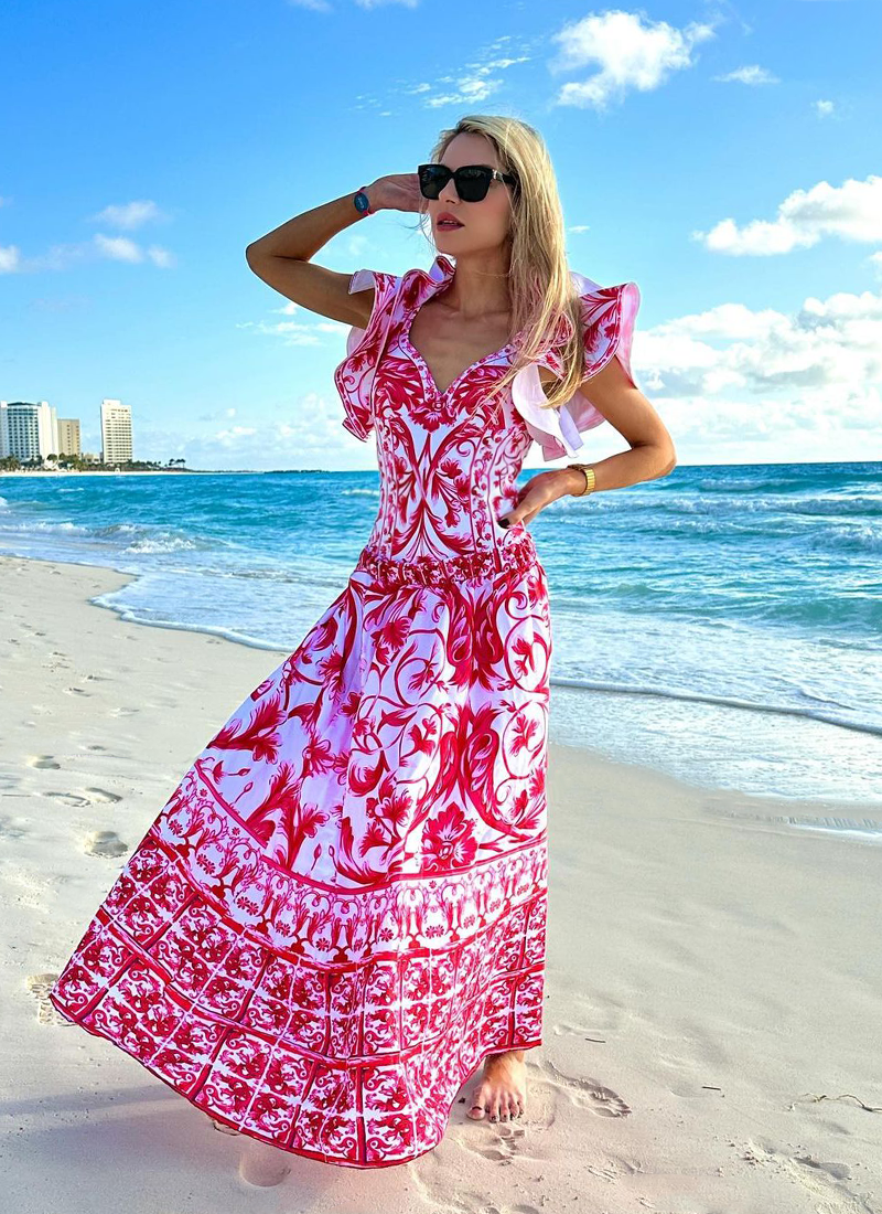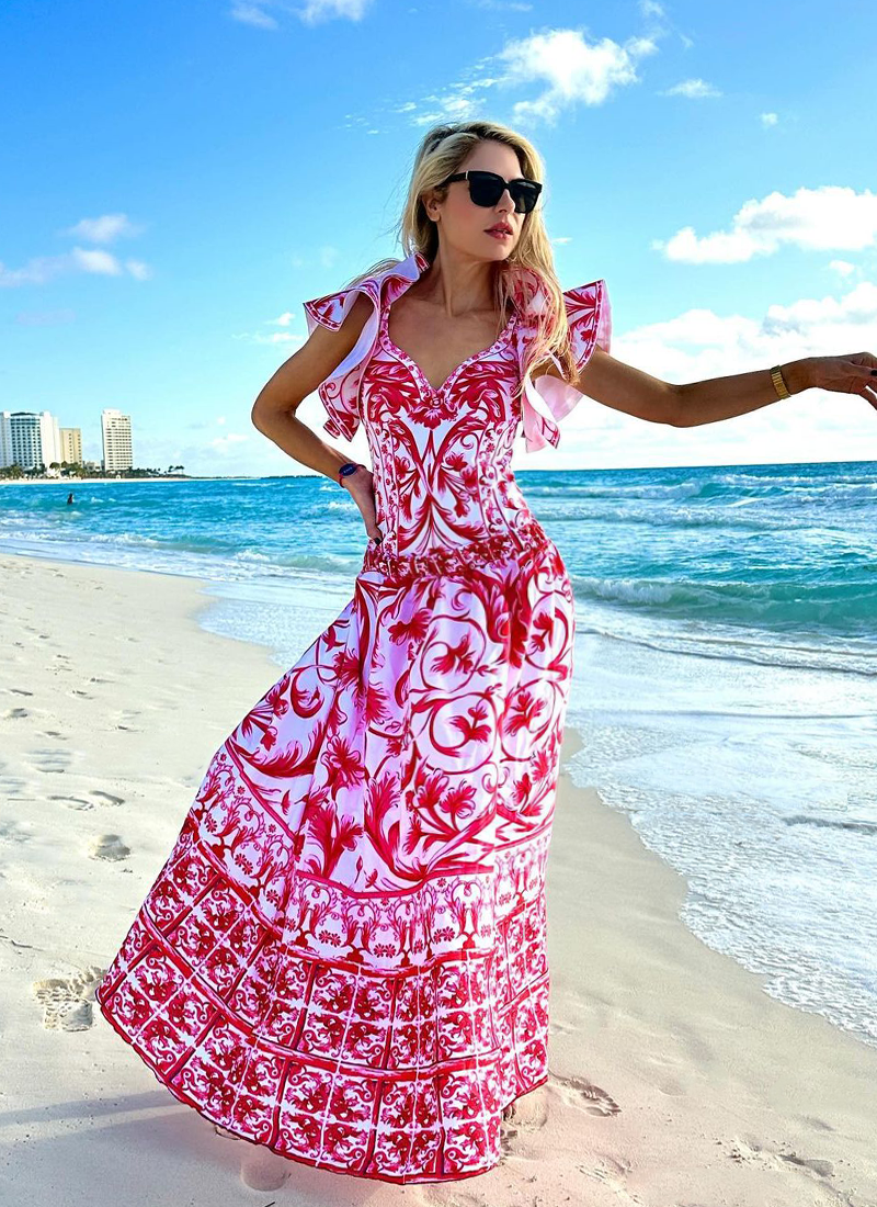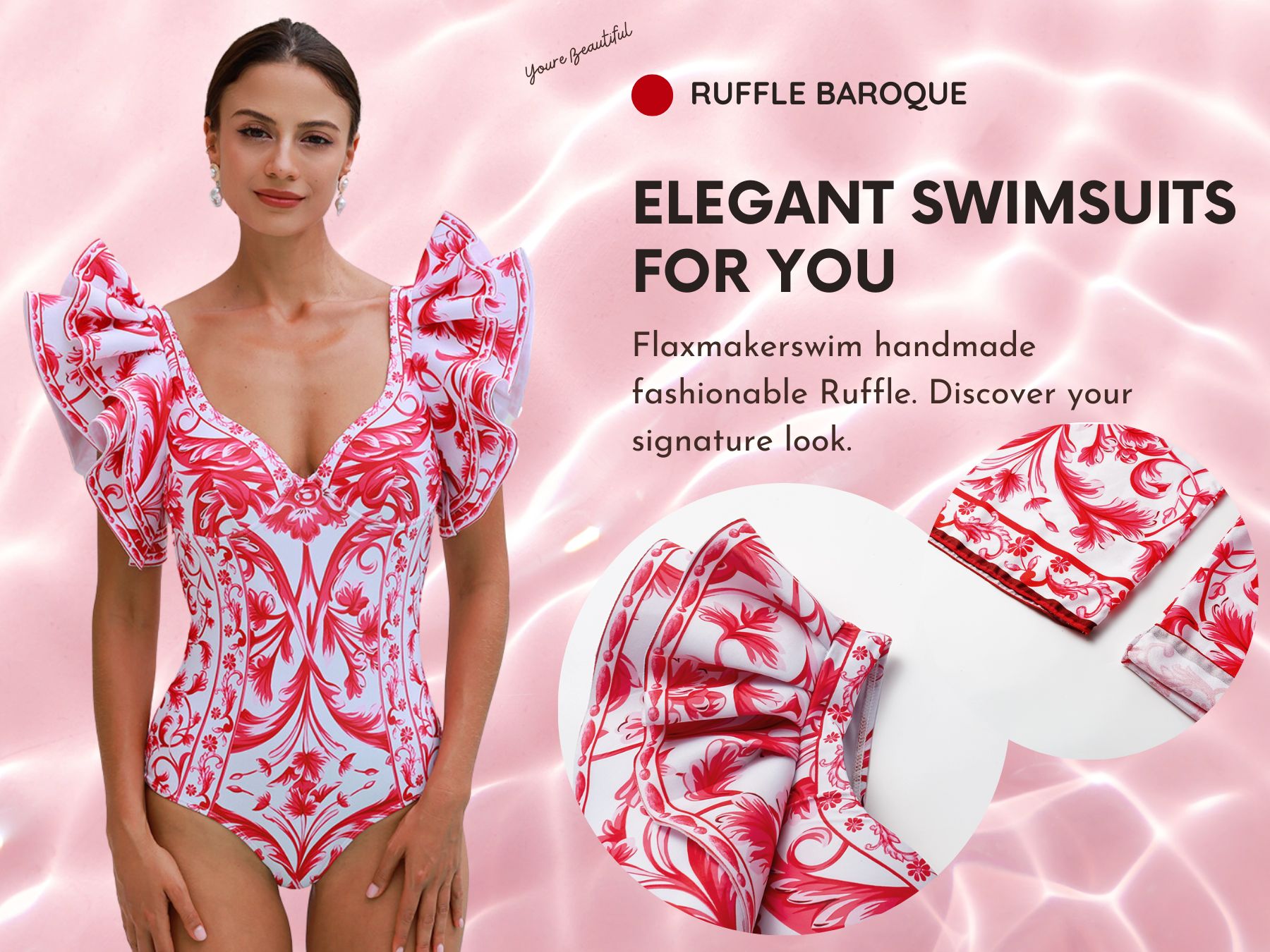 Baroco Style Printed One Piece Swimsuit and Skirt Flaxmaker