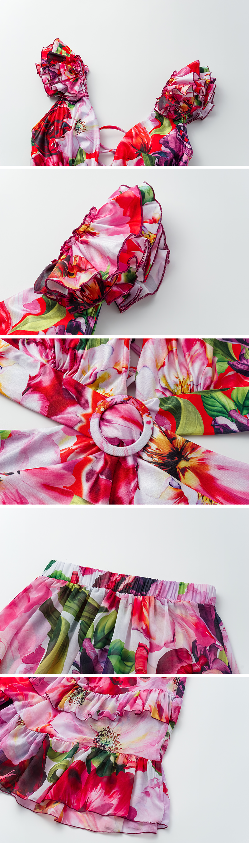 Ruffle Cut Out Floral Printed One Piece Swimsuit and Skirt