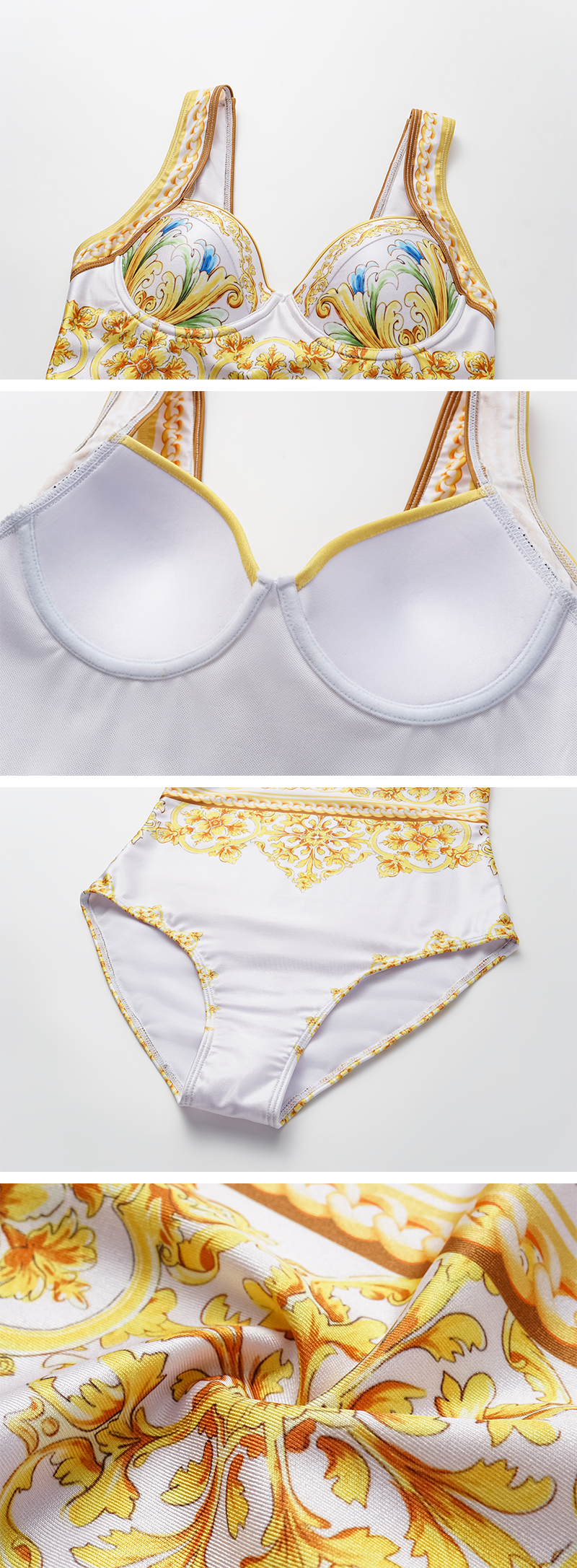 Sling Chest Support Golden Majolica Print One Piece Swimsuit and Sarong or Shorts