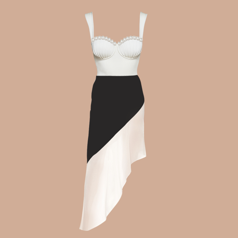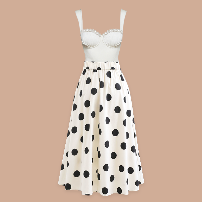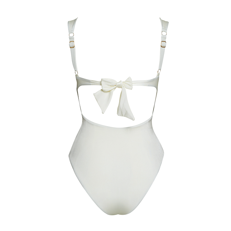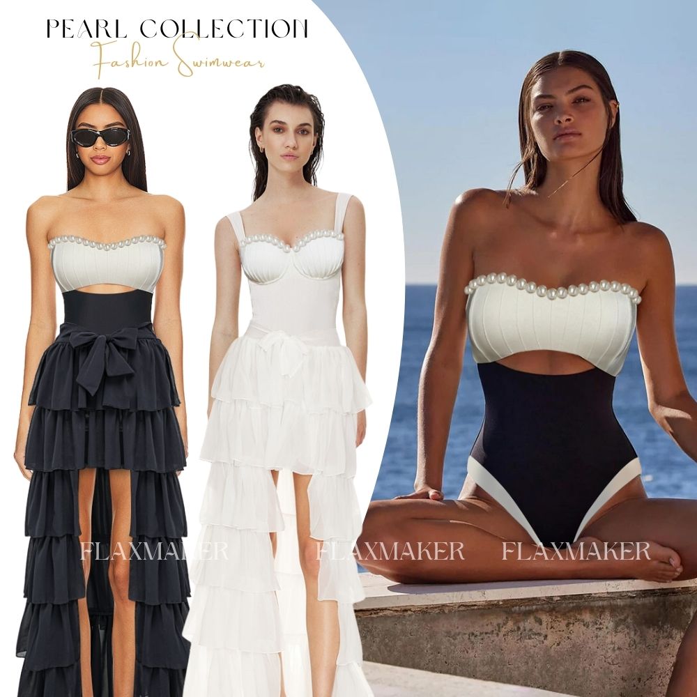 Sling Artificial Pearl Decor White One Piece Swimsuit and Skirt