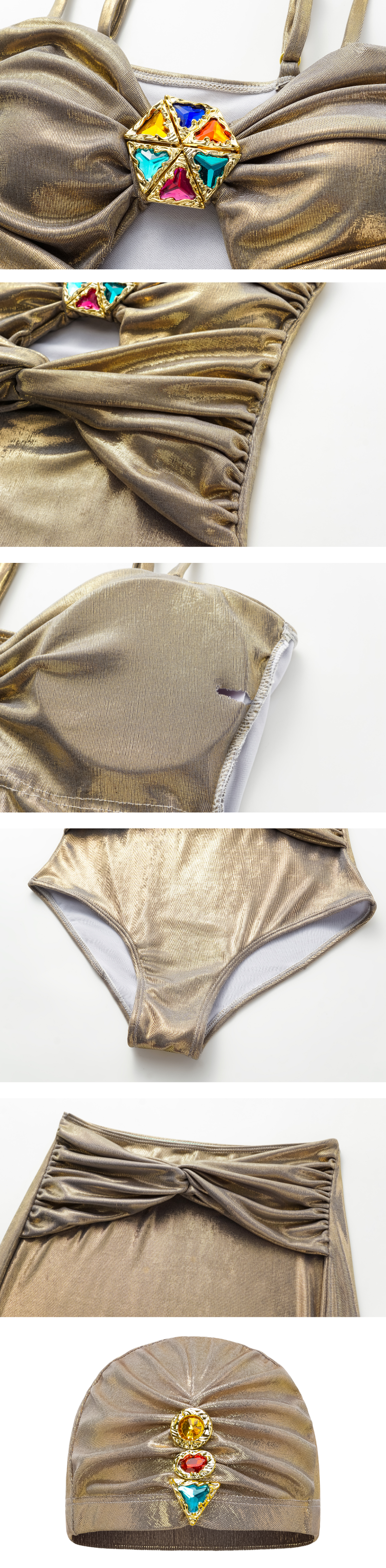 Stone Decoration Shiny One Piece Swimsuit and Skirt