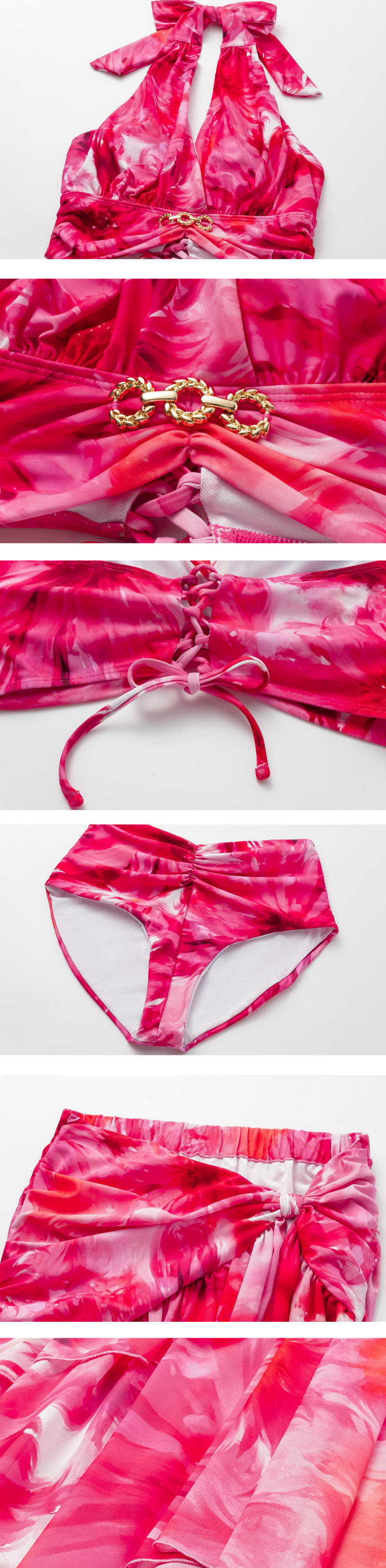 Floral Printed Halter Bikini Swimsuit and Skirt