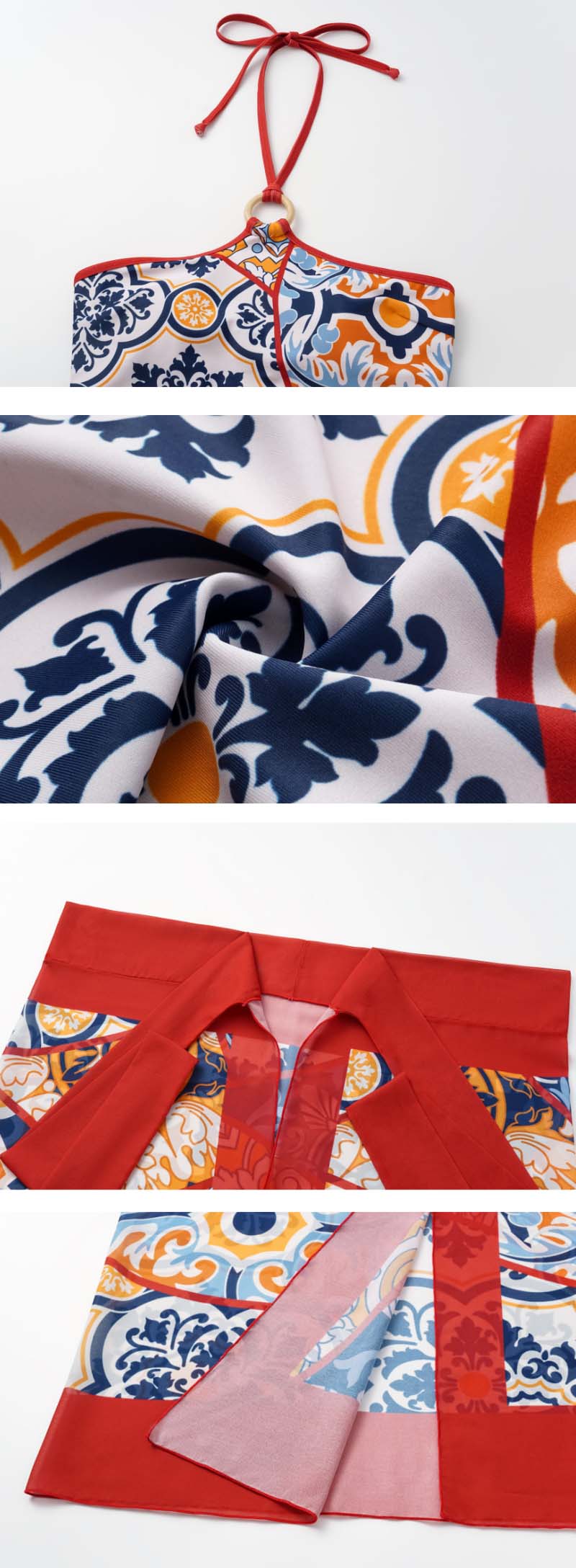 Printed Halter One Piece Swimsuit and Sarong Flaxmaker