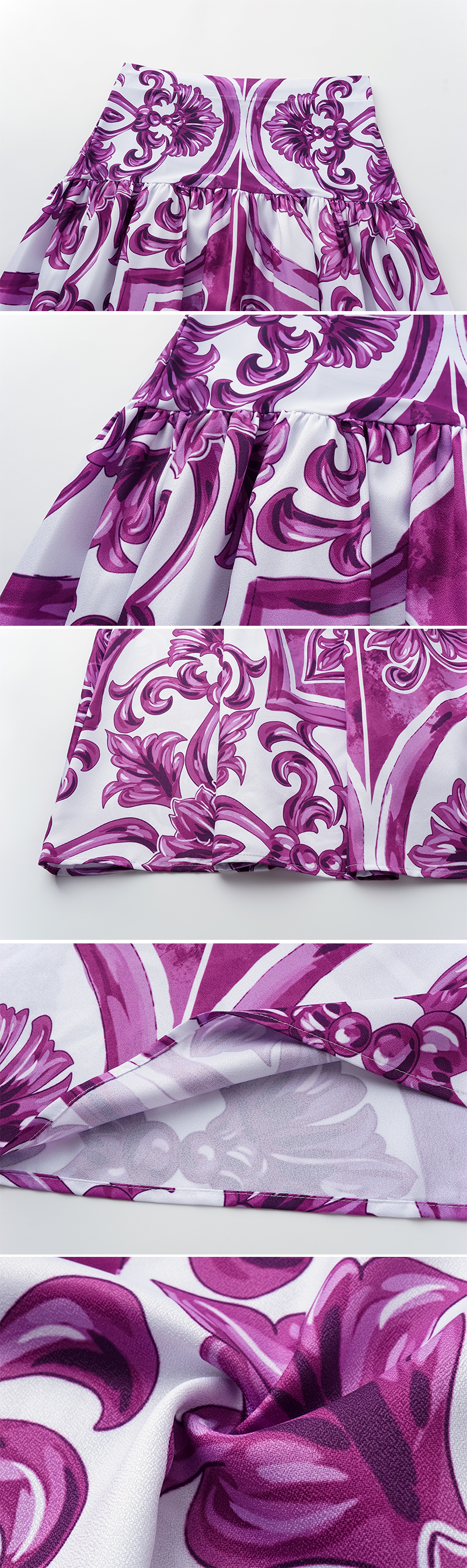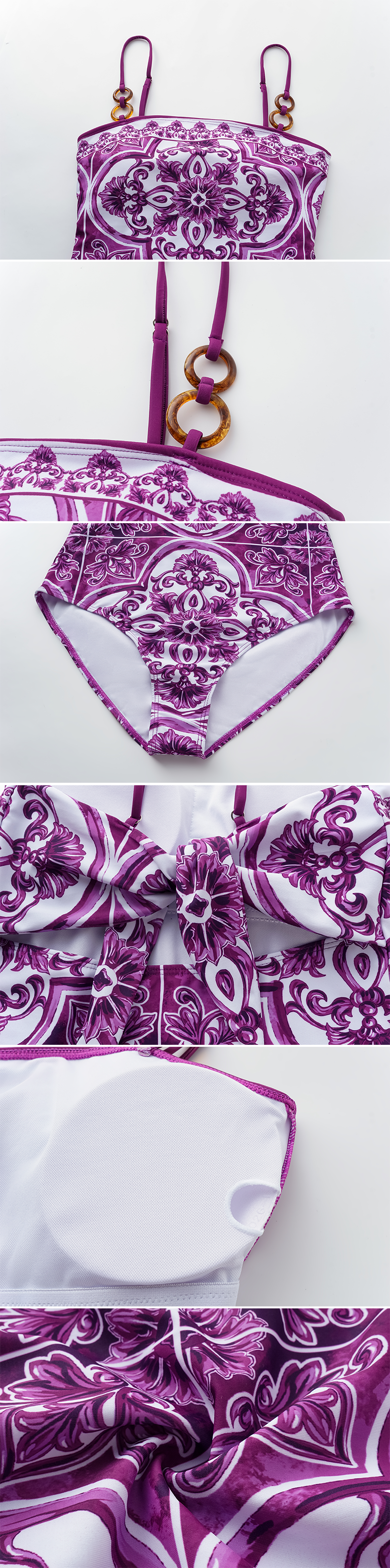 Sling Classic Majolica Series Pattern Print One Piece Swimsuit and Skirt or Shorts
