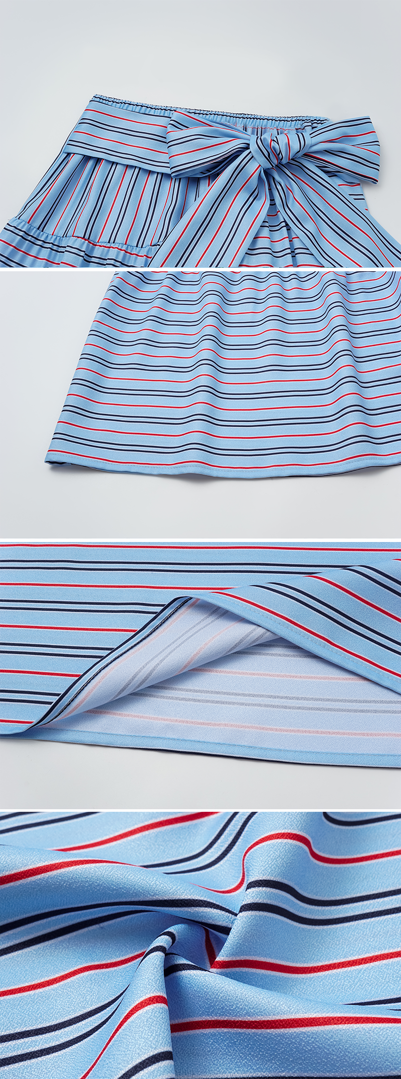 Multi-Way Striped Bowknot One Piece Swimsuit and Skirt